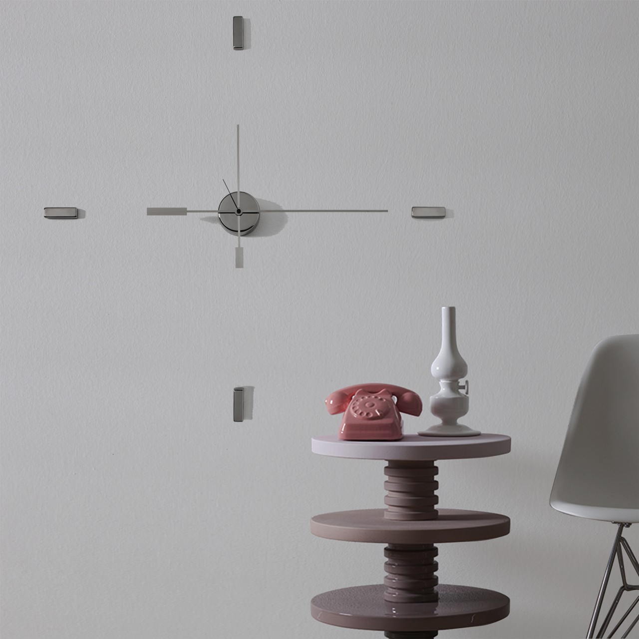 Amuro è un orologio da parete minimalista ed elegante la cui forma essenziale, caratterizzata da lunghe lancette affusolate, crea intriganti giochi d'ombra, quasi a rievocazione dell'antenata meridiana. Composto da soli 4 tasselli e 1 piccolo cilindro contenente gli ingranaggi, è facilmente applicabile a parete attraverso un semplice chiodo per la parte centrale, e nastro biadesivo per le ore.