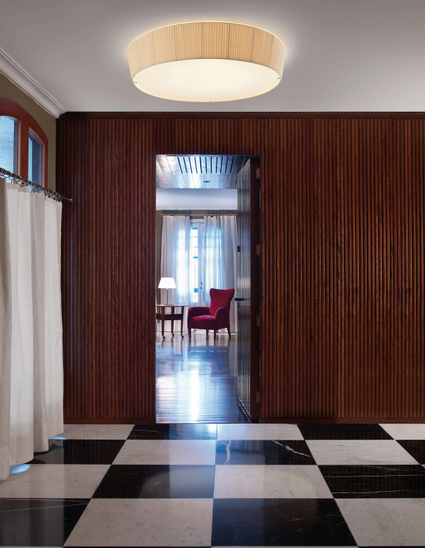 Plafonet is one of the most flexible products in our portfolio due to its simplicity, good design and excellent quality vs. cost relationship. Plafonet has been with us since 2005 and it has been taking up a stance on the bestsellers ranking year after year. This ceiling lamp was born in our technical office and it is the result of long talks between Carles Riart, Lluís Porqueras and Joana Bover during the refurbishment of the Fonda Europa in Granollers, in which Riart and Porqueras contributed their best knowledge, steeping that beautiful place with a new air but keeping its strong identity. The result was a more comfortable space for endless social gatherings. All the furniture and accessories were designed and created separately, according to the use and place where they were supposed to be allocated. That was, without a doubt, the result of the sensitivity Mr. Parellada, the owner, has for design.