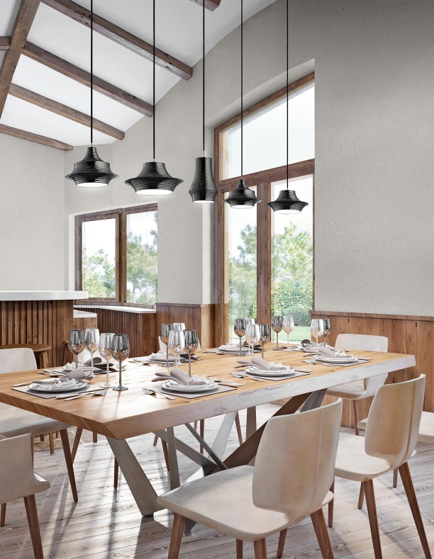 TIBETA is a family of pendant lights made of a spun aluminum body. It is available in three different sizes and shapes which can be used either individually or in groups of three or more units according to client’s needs. Tibeta includes a LED module inside, which provides direct bottom light.