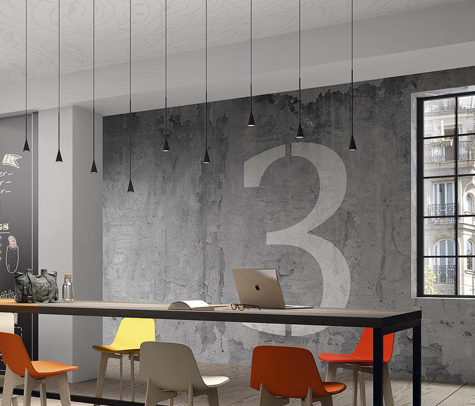 Skybell is an extensive system of light structures, designed to adapt to any type of application. Their main characteristic is the image they give off, they are subtle and cheerful. They breathe a point of fantasy and freedom in their applications because they can be combined in variations, mixing their 4 sizes, until they achieve a more personal and dynamic lamp concept or they can keep all the ‘bells’ in the same length, achieving a more traditional image.