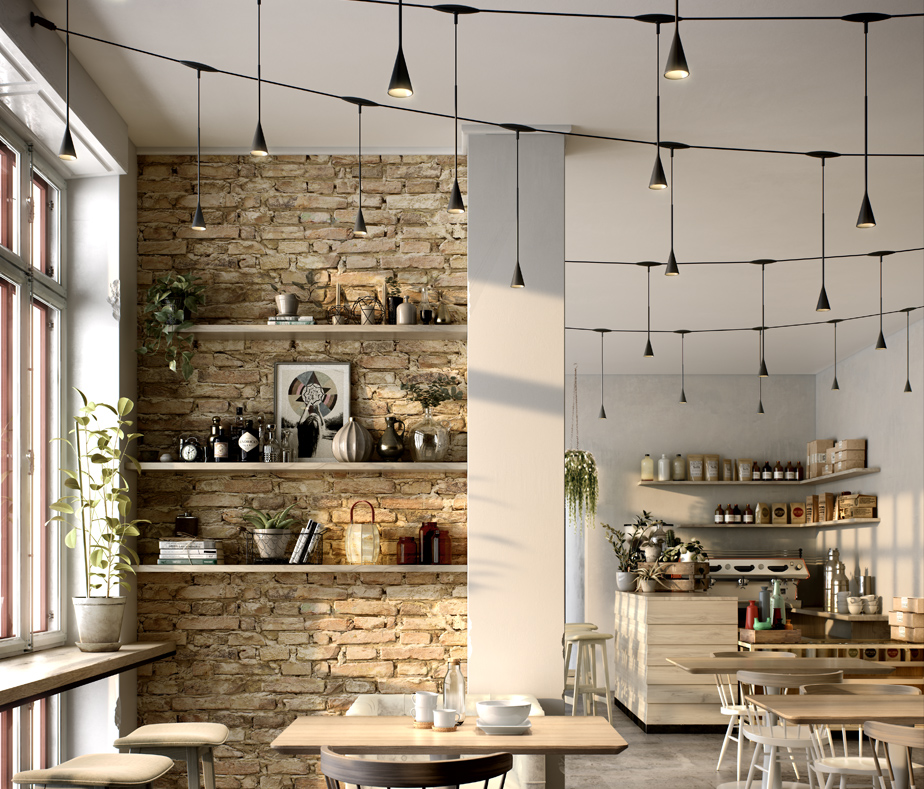 Skybell is an extensive system of light structures, designed to adapt to any type of application. Their main characteristic is the image they give off, they are subtle and cheerful. They breathe a point of fantasy and freedom in their applications because they can be combined in variations, mixing their 4 sizes, until they achieve a more personal and dynamic lamp concept or they can keep all the ‘bells’ in the same length, achieving a more traditional image.
