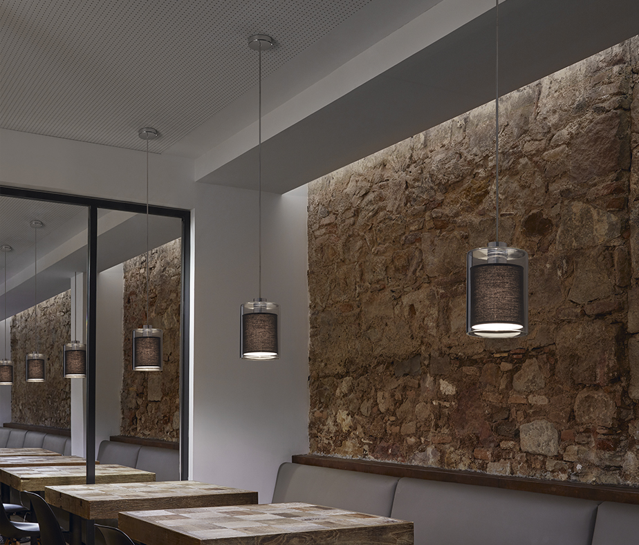 OLIVER is clearly oriented to the Contract/Hospitality sector thanks to its features. These luminaires are made out of borosilicate glass and a warm light source to bring efficient light without glare and easy maintenance. Oliver incorporates an inner textile shade, protected from dust through the glass and available in 6 different finishes or even customized.