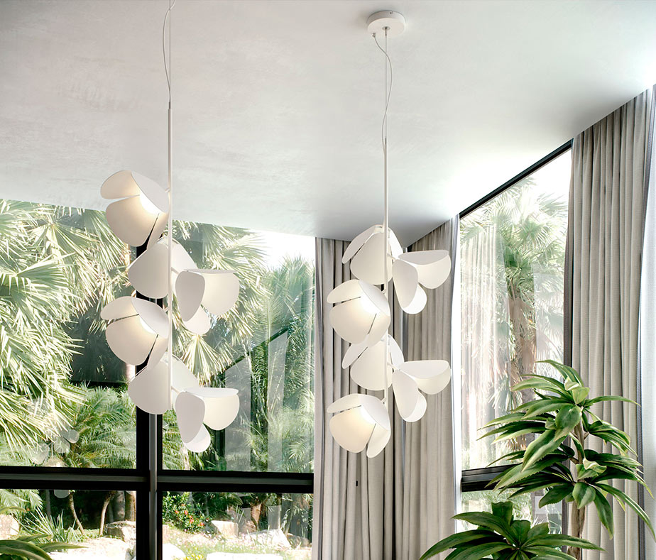 The Mod seeks its inspiration in the flora kingdom, as it can be grouped to form a garden of possibilities through the finishes of the clusters of flowers. The petals of its flowers are customizable, being able to adapt to almost all types of materials; Plates smooth, perforated, deployed or drawn and laser cut according to the agenda you want to use. They also accept natural materials, such as wood panels or natural fibers such as raffia and if we let our imagination fly, we can sew or crochet them with colored thread.