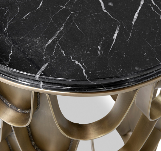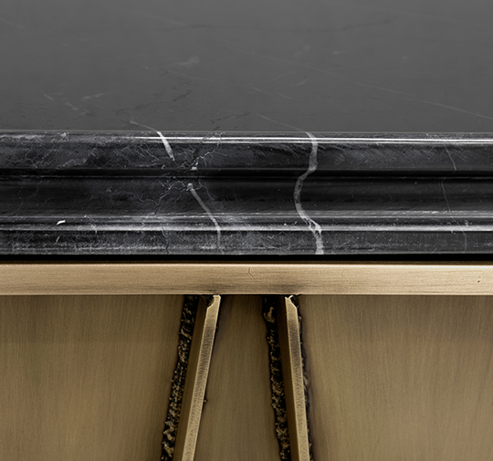 Koi Carp is a recurring symbol of Japanese culture. Its natural colour mutations reveal their capacity to adapt, just like KOI Console Table. With a base in brushed brass matte and a top in Nero Marquina marble, this contemporary hallway console table will add refined elegance to any modern contemporary interior design
