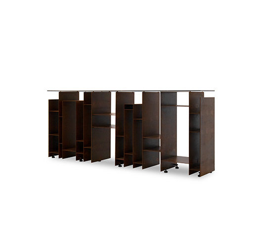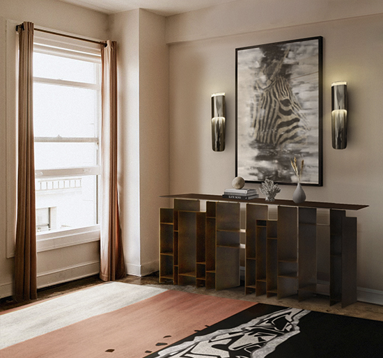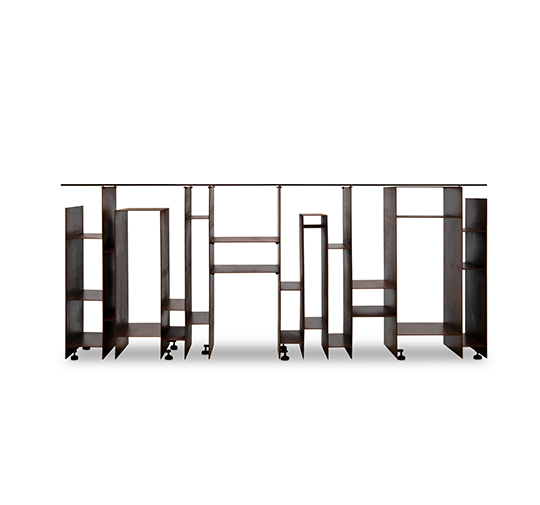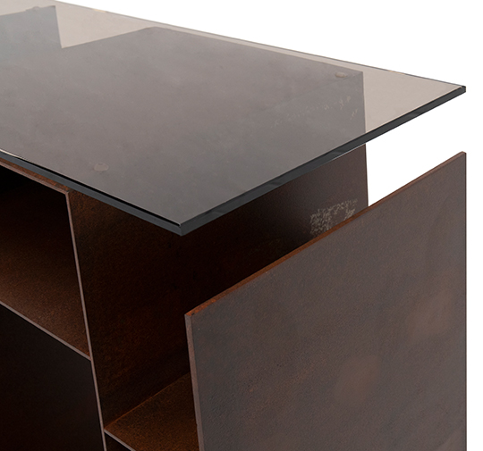 The incredible Beijing skyline inspired our designers to create KYAN Console Table, a strong and edgy furniture item. Featuring a top in bronze glass and a base in oxidized corten steel matte, this modern steel console table tells a story with an unfinished end. Place it in any modern home design and witness fierce design come to life.