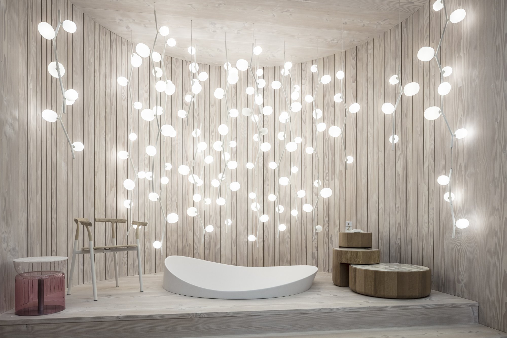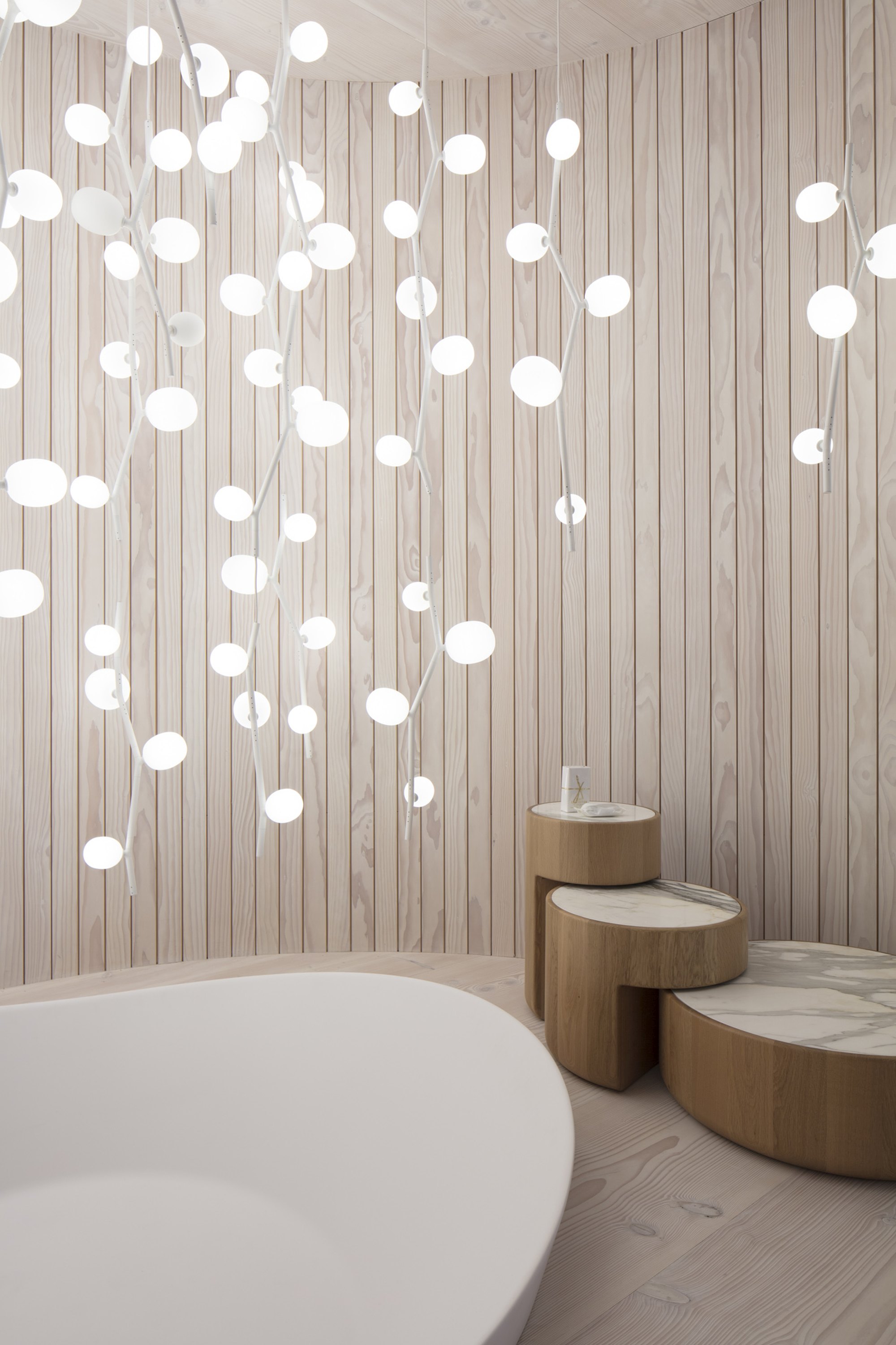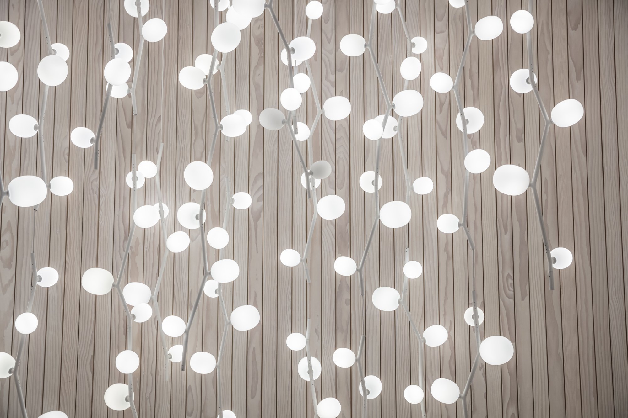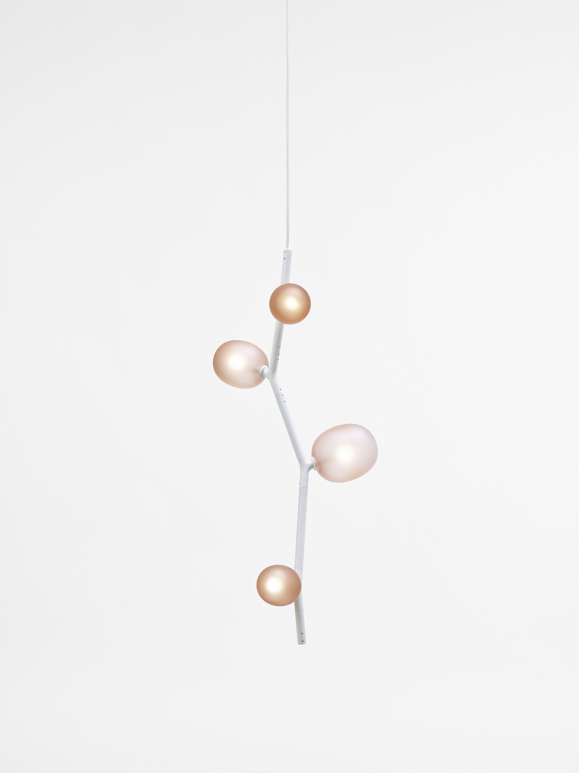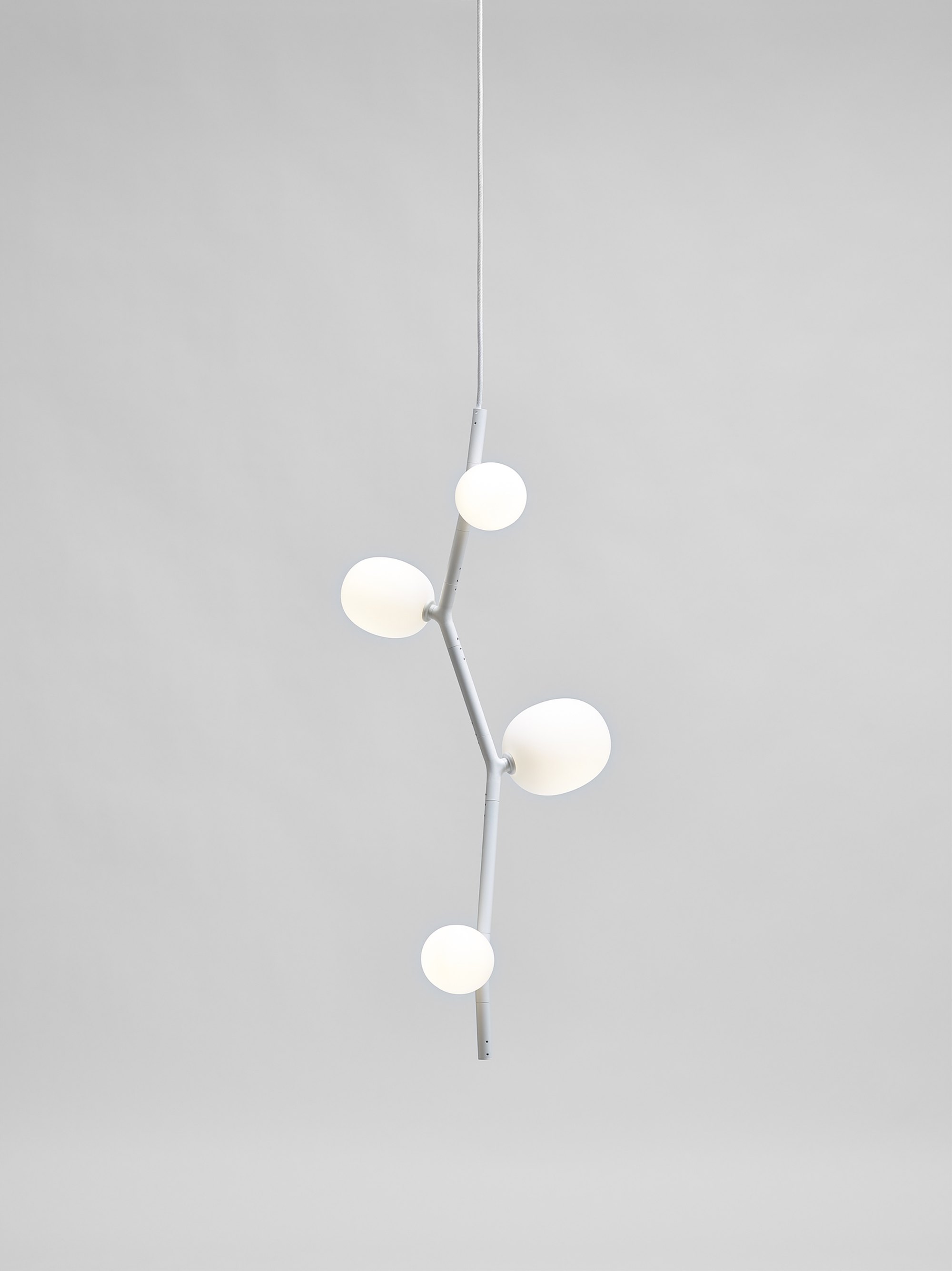 The collection features three sizes in opal or smoke glass. Variable, elegant, and precise in workmanship all the way down to the smallest detail, IVY is a high-tech lighting concept well suited to both commercial and residential applications. In intimate home settings, for example, a single elegant branch can be used, or multiple branches can be joined together to create a curtain of light. IVY has many forms and justly takes its place among artistic, so-called bespoke, lighting installations.