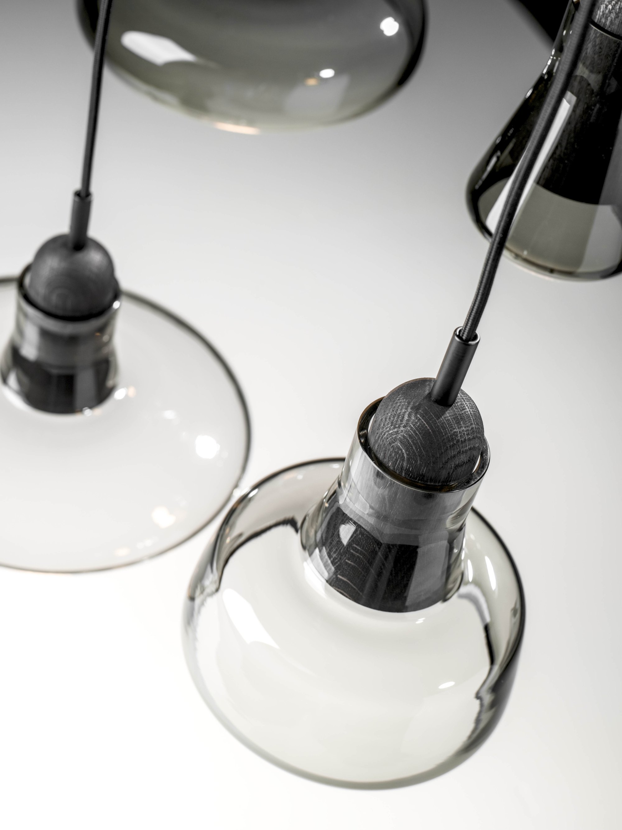 The Shadows collection is a take on the famed, timeless lights found in French ateliers, and its typology pays tribute to that legacy. The combination of handblown glass, handcrafted wood, and classic shaping has given rise to a light of ageless elegance. The collection comprises four different suspension lights, as striking alone as they are in sets, characterized by a handblown glass shade set upon on a handcrafted wooden body. The clean contours and finish are accentuated by the concealed light source.