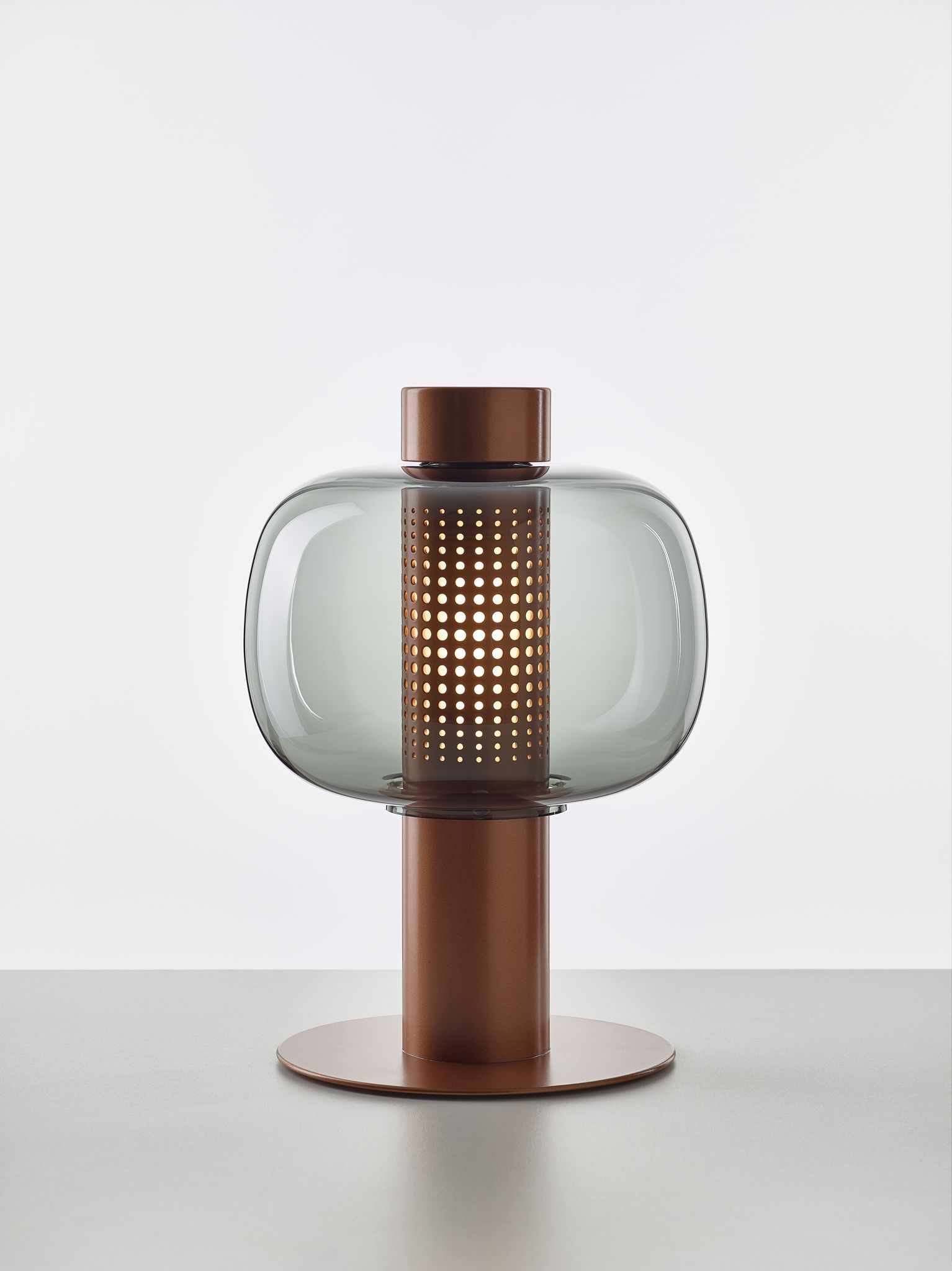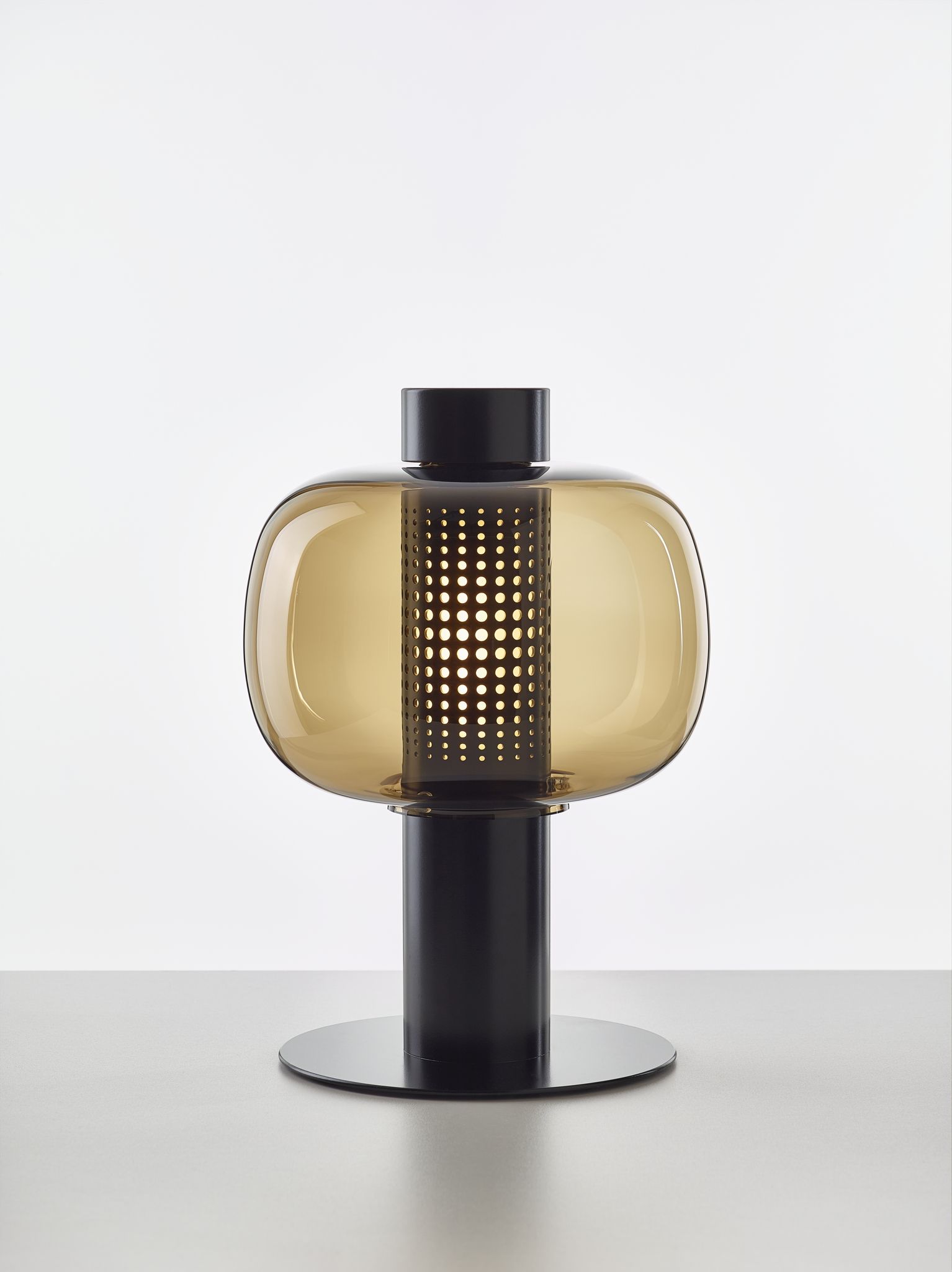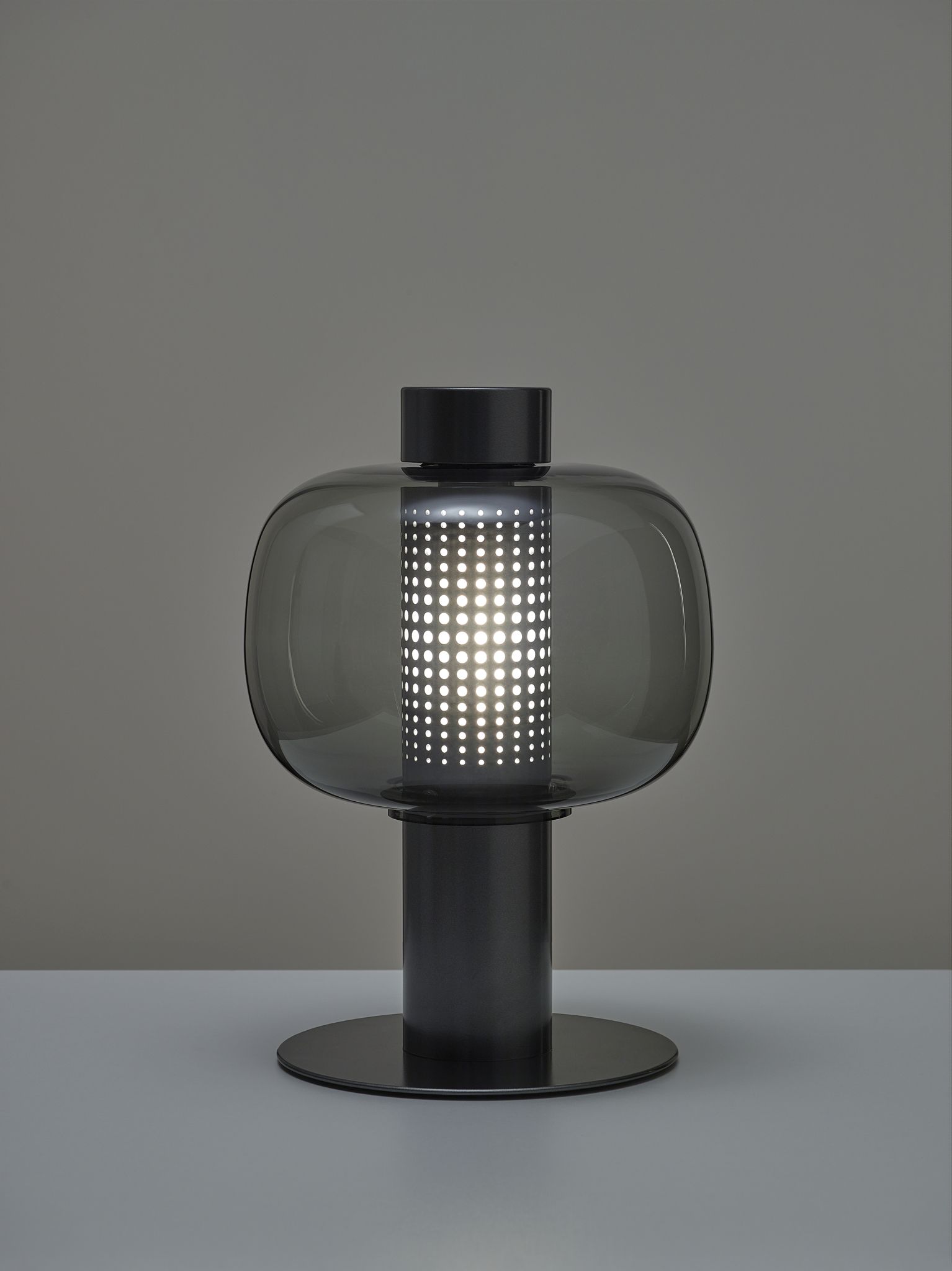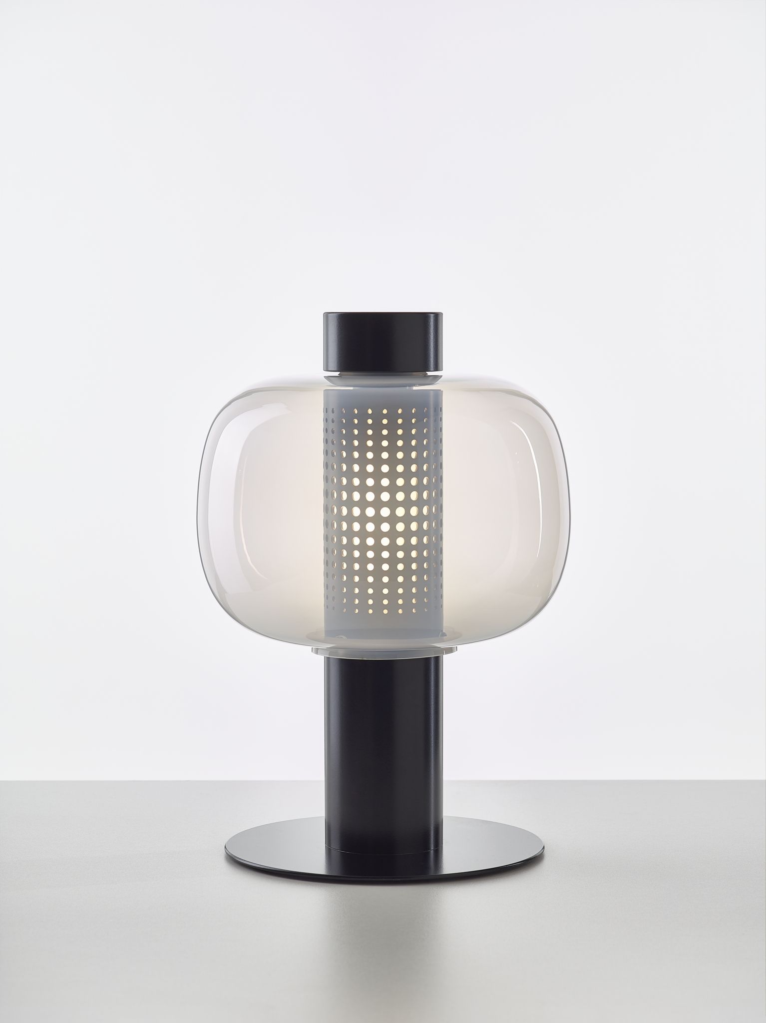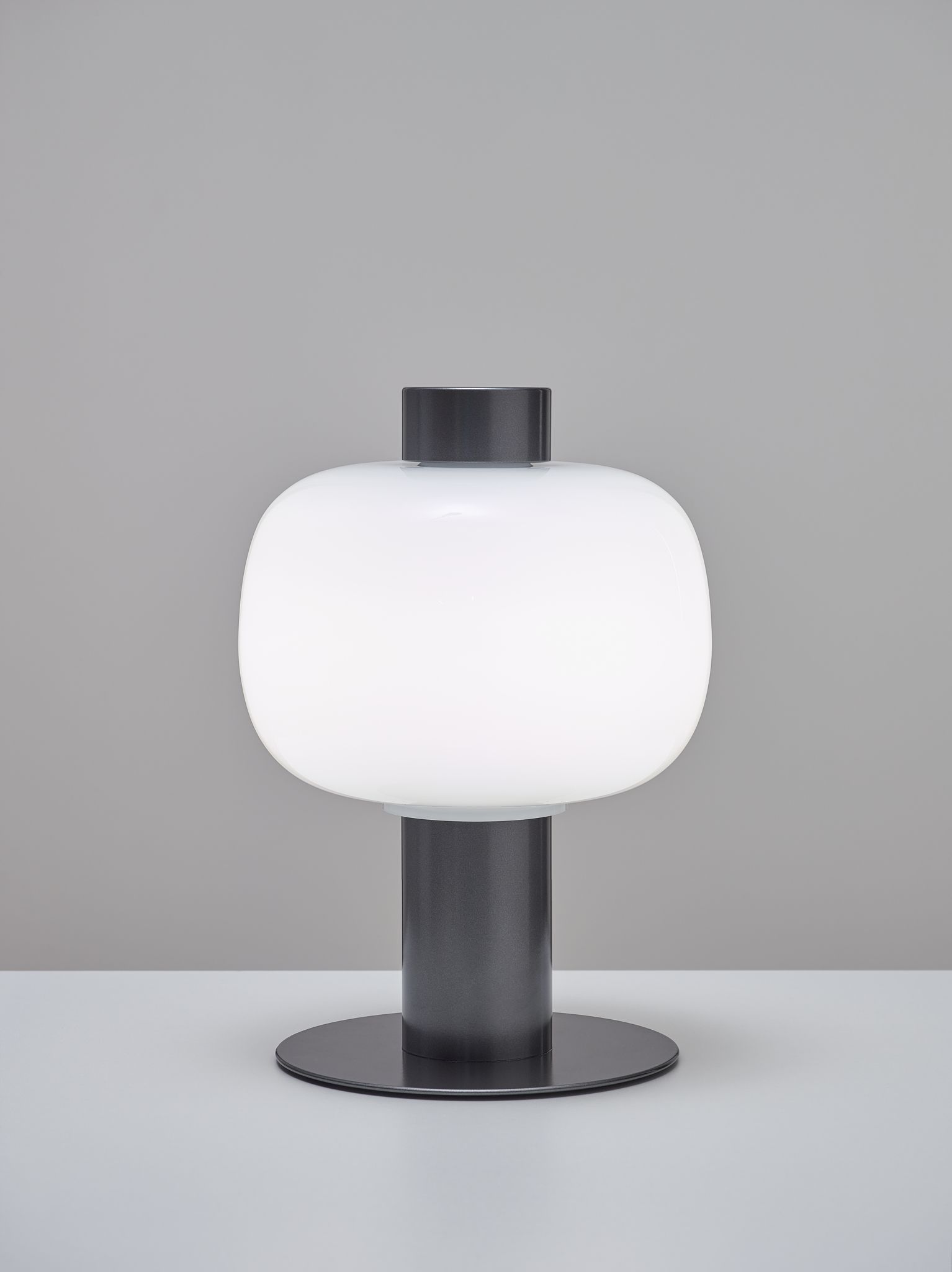 Manufactured in compliance with the IP54 rating for outdoor use, the new light makes use of a simple stainless-steel base finished in an environmentally friendly weather-resistant powder coating. The easily removable LED light source, which can withstand below-freezing temperatures, casts a gentle glow through a diffusor and laser-cut openings in the stainless steel. The likeness to the traditional bonbori lamp is achieved with an elegant handblown glass shade, an extraordinary piece crafted from multiple layers of carefully moulded glass.