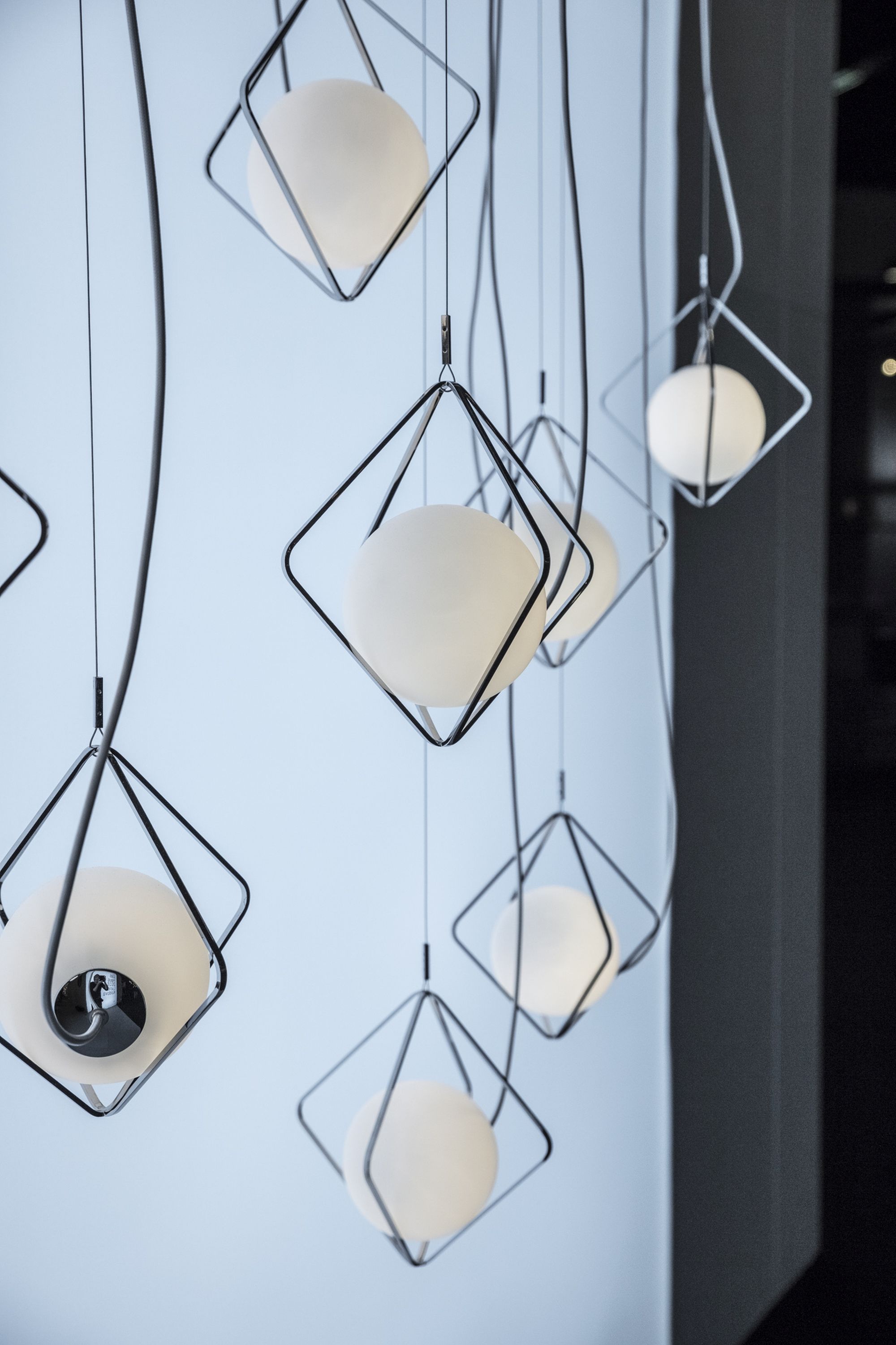 The Jack O’Lantern Table is available in two sizes and its Small version comes in size of 325 x 260 mm. This subtle and geometrically balanced light offers a wide variety of combinations. It can be hung separately or in vertical lighting arrangements. In addition to the suspension variant, there is also a wall composition comprising five frames joined in a single module for up to five glass spheres, which rely on nothing more than gravity to stay in place.