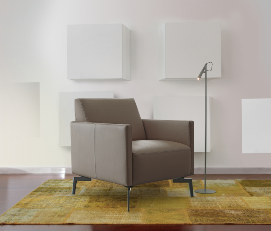 Chanel presenta sedute accoglienti e schienali circondati da due braccioli geometrici e sottili, che danno slancio al modello. La poltroncina è disponibile anche nella versione girevole e divanetto, pensata per gli ambienti più piccoli grazie alle dimensioni contenute.