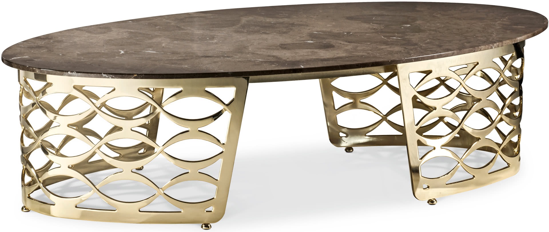 Tavolino classico da salotto Isidoro con piano ovale in marmo o vetro.