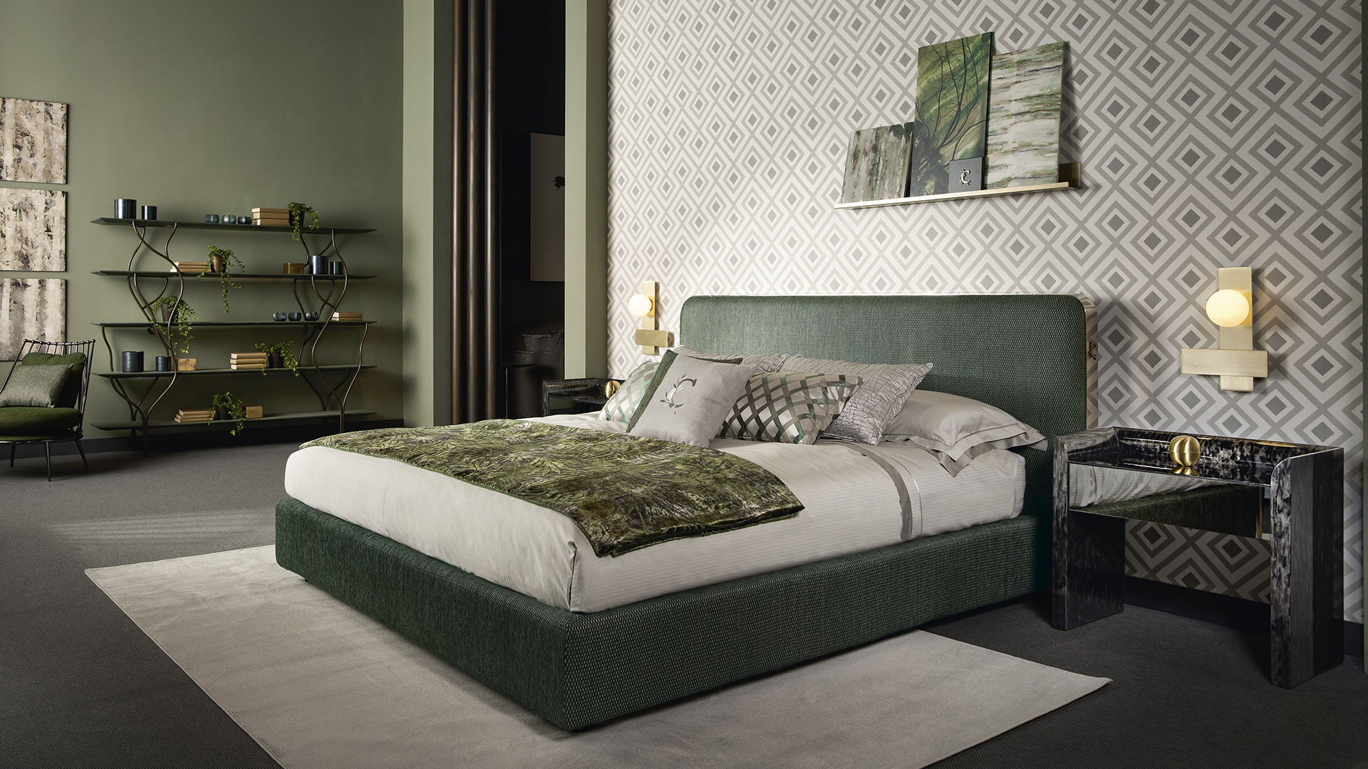 Gli spigoli arrotondati e la cornice sono realizzati in alluminio pieno curvato; la testata e il giroletto sono imbottiti e rivestiti, o impunturati se in pelle, anche in tessuto/pelle fornito dal cliente (il giroletto è sfoderabile). Il letto Elvis, con la sua matrice “streamline” dona un carattere unico alla camera da letto moderna; è disponibile in varie dimensioni per reti da cm: 160x200 (letto matrimoniale), 180x200 (letto matrimoniale) e 200x200 (letto king size) anche nella versione con box contenitore.