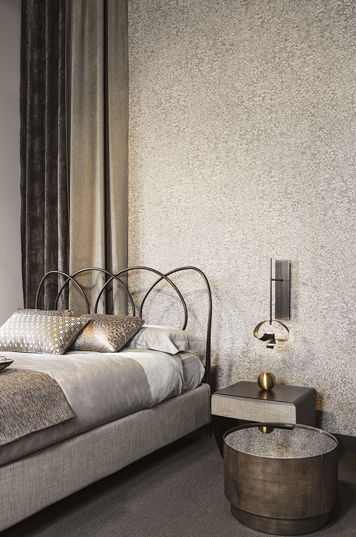 Letto matrimoniale moderno Helios imbottito in metallo.