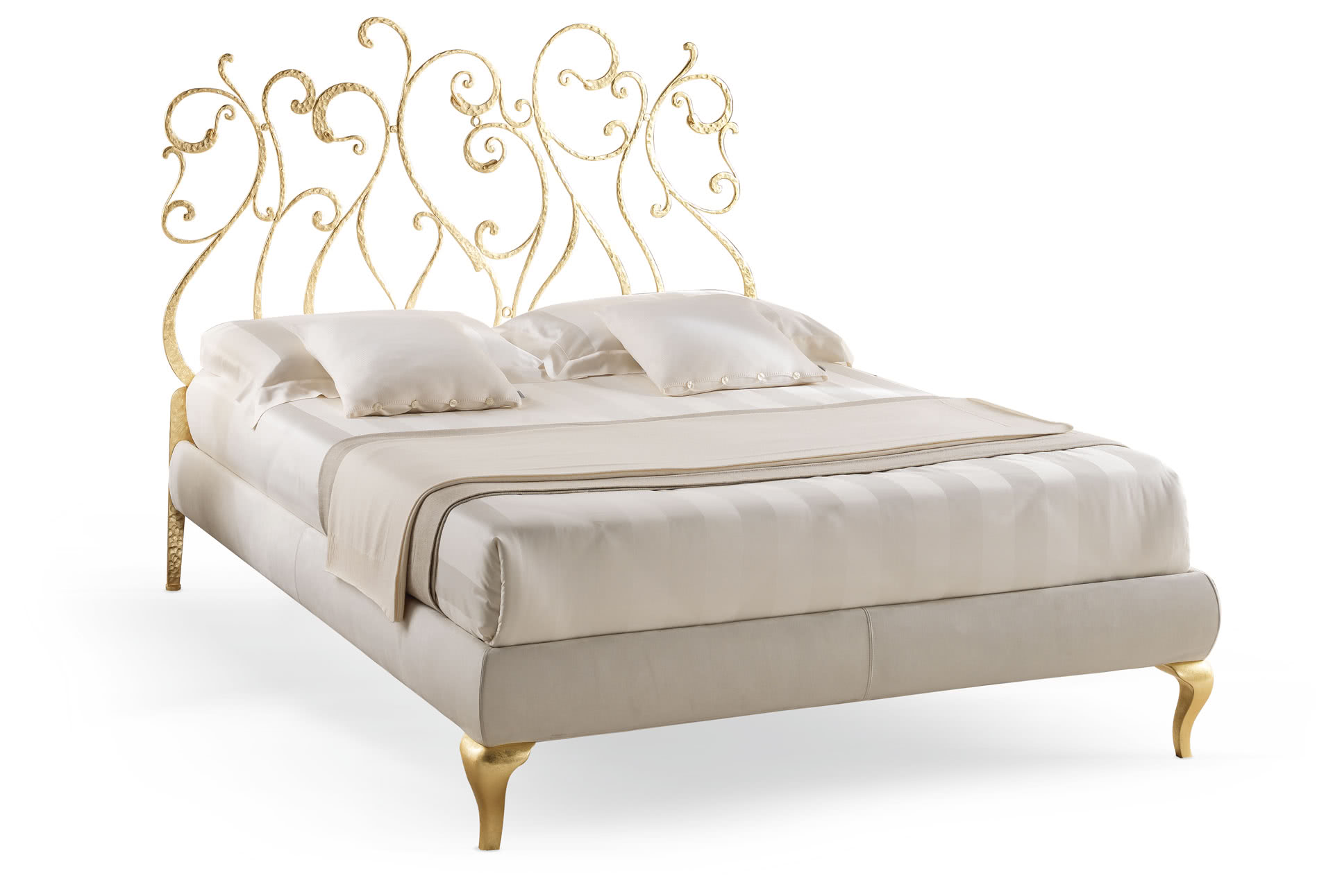 Letto matrimoniale in stile liberty Klimt in ferro battuto con giroletto imbottito.