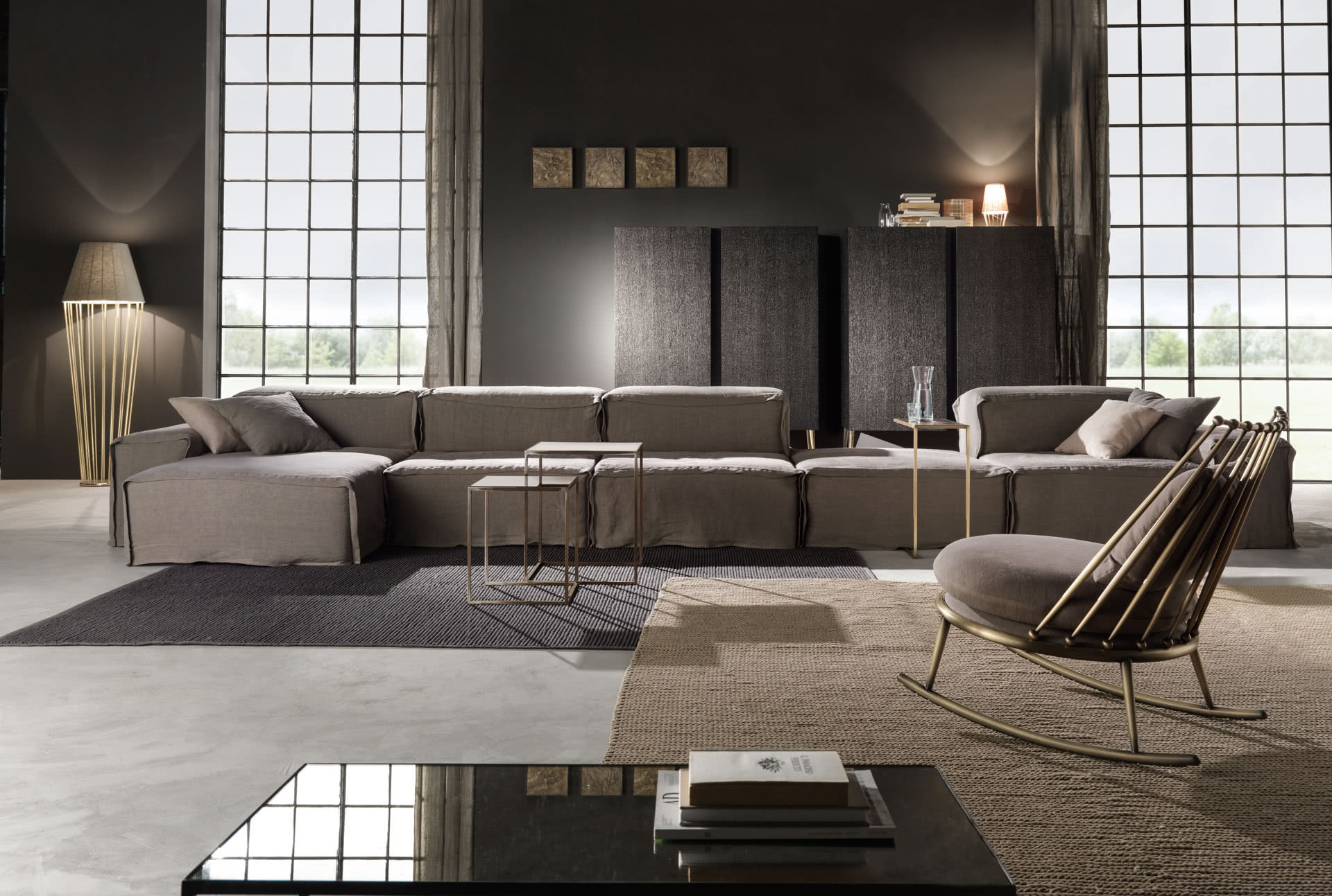 La base è disponibile in diverse finiture dal bagno oro, ottone al ferro metallizzato. I cuscini e la seduta, in legno sagomato e imbottito in gomma a due densità, sono rivestiti sartorialmente; anche con tessuto o pelle fornita dal cliente. Una poltrona dal sapore vintage dal design internazionale.