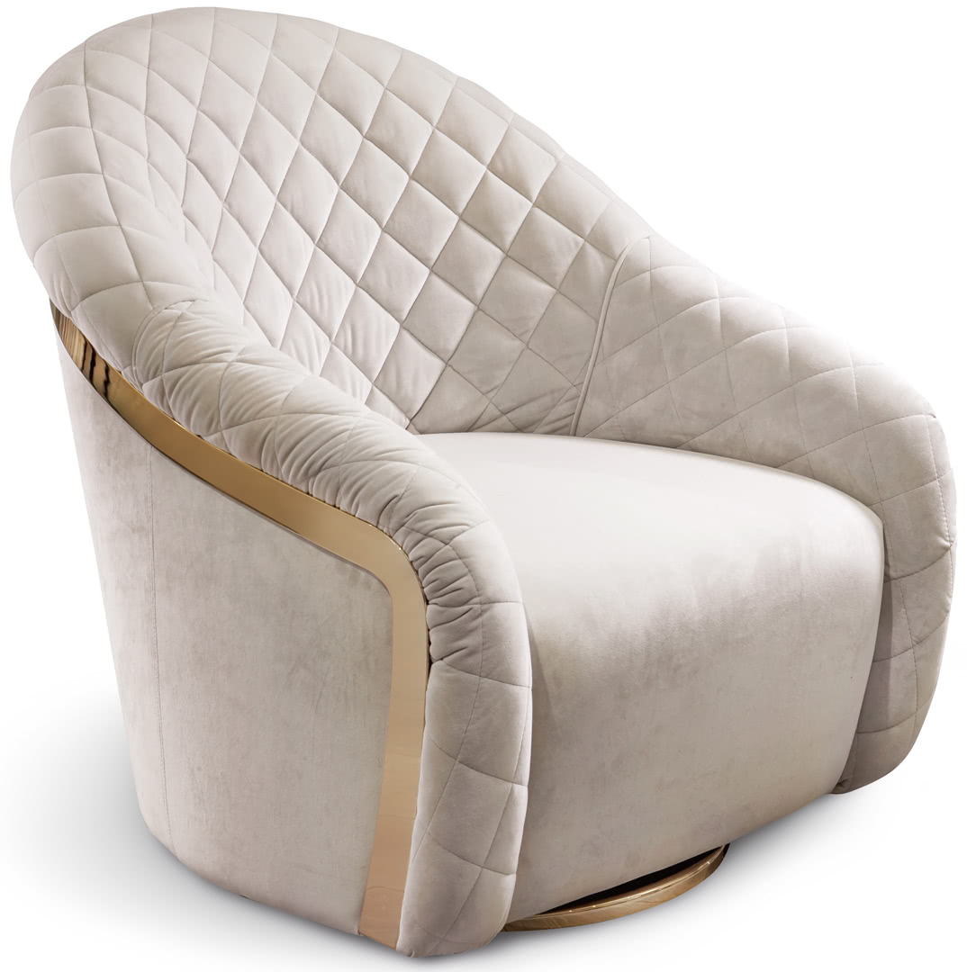 Poltrona girevole classica Portofino con dettagli e base in oro.