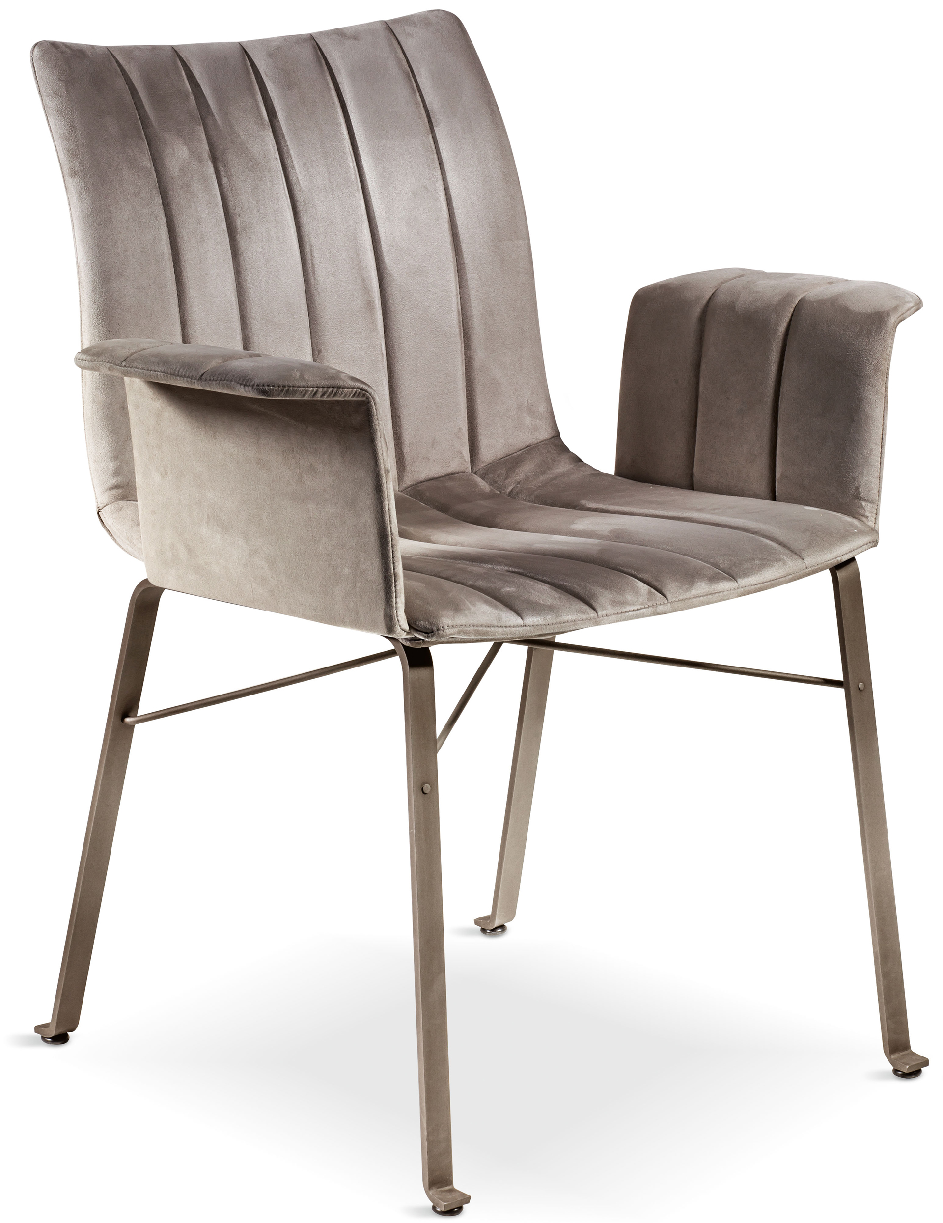 La base è realizzata in ferro pieno. La seduta ergonomica, con un’anima in legno curvato ergonomica, è imbottita con “memory foam” e lavorata con trapuntatura a losanga per renderla comoda e avvolgente. L'altezza è regolabile. Design moderno.