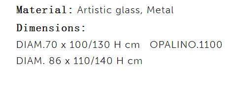 In chandelier Opalino a cascade of glass spheres are assembled at different heights on a metal plate: all these elements, realized by master glassmakers following the glassblowing technique, once enlightened create a play of lights in the surrounding room.
