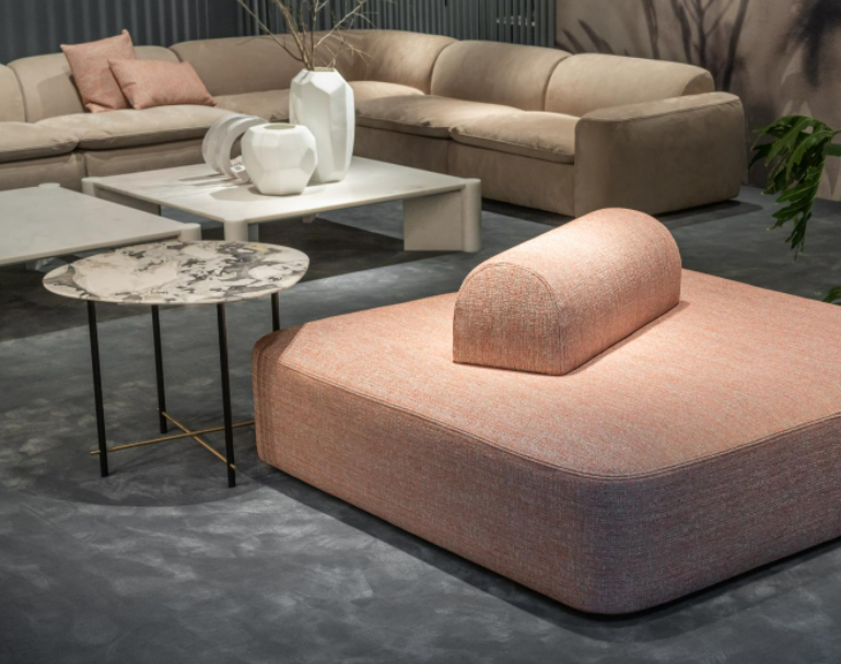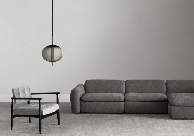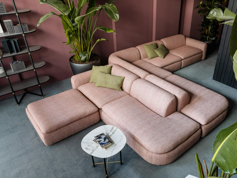 Modular seating system with a soft and harmonious line, characterized by the delicate curves of the armrests and backrest. It is possible to create a wide range of solutions with central elements, terminals, corners, chaise longue and open-end elements. Suitable for both residential and hospitality projects.