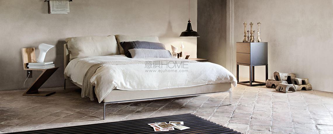 Sollevato da terra e caratterizzato da una linea sobria ed essenziale, il letto Moov rappresenta l’evoluzione naturale dei concetti di comfort e stile già presenti nell’omonimo divano disegnato da Piero Lissoni. La forma elegante è caratterizzata dal giroletto e dalla testiera imbottiti, con rivestimento tessile sfoderabile oppure fisso in pelle. La struttura portante è in multistrato di pioppo dotata di piedini in pressofusione di alluminio lucido. A corredo della testiera, sono previste cuscinature porta-guanciali, trattenute da un rollo cucito sulla parte posteriore, per conferire equilibrio e armonia. Il letto è completato dai comodini Note di Piero Lissoni.