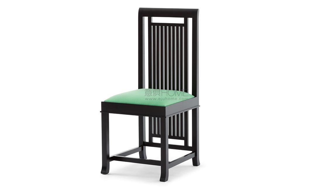 Una sedia estremamente funzionale, progettata nel 1907 per la Avery Coonley House, tra i massimi esempi dello stile praire house. Wright utilizza suoi tipici montanti verticali per una costruzione caratterizzata dalla sapiente combinazione tra forme e materiali, capace di confondersi con l’ambiente circostante in un’armonia perfetta. Come in ogni progettazione del maestro, il rapporto con la natura occupa un ruolo centrale. Il modello con schienale alto è per questo concepito come un arredo estremamente funzionale, in grado di donare eleganza e comodità a chi lo usa raggiungendo al tempo stesso una simmetria essenziale fatta di linee semplici e pulite.