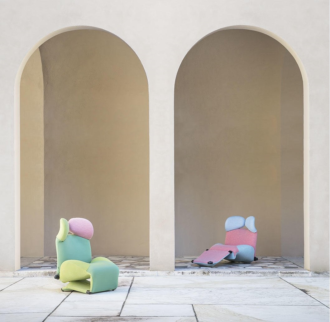 Ergonomia e flessibilità sono i tratti principali di Wink, una poltrona dalla sagoma versatile ed eclettica, che si trasforma in chaise-longue grazie alla struttura dotata di base ribaltabile in avanti. “Su Wink ci si siede a terra e, secondo la tradizione orientale, quando un corpo è seduto a terra lo spirito si eleva”, afferma il designer Toshiyuki Kita nel descriverne il senso. Le proporzioni contemporanee, dall’anima multifunzionale e dall’aspetto ironico, sono personalizzabili con il rivestimento in pelle o in un’ampia gamma di tessuti e colori in continua evoluzione. La posizione dello schienale, completo di poggiatesta con sezioni reclinabili, è regolabile a piacimento mediante le manopole laterali, disponibili in set di diverse tonalità da abbinare ai piedini anteriori e posteriori.