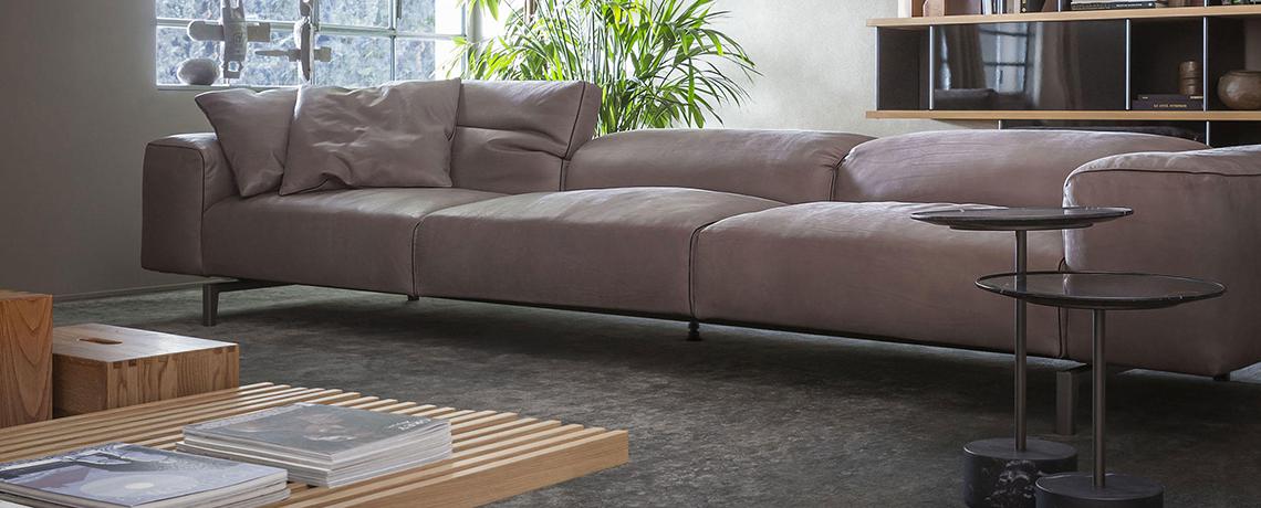Un divano dalle proporzioni morbide e generose, ma anche leggere e minimali, progettate nell’ottica della versatilità, della funzionalità e del comfort. Scighera, con imbottitura in piuma, offre un ampio sistema di sedute ed elementi componibili che consentono di creare configurazioni estremamente ampie e flessibili. Il poggiatesta ribaltabile e le dimensioni amplificate dei braccioli, proposti anche nella versione stretta, diventano tratti connotanti del design. Il particolare meccanismo di movimento integrato nello schienale consente le diverse inclinazioni e si richiude a filo bracciolo per enfatizzare la linearità e il minimalismo delle forme. Un ulteriore tocco di distinzione deriva dalla pregiata cucitura con profilo in gros-grain, disponibile in quattro tonalità naturali.