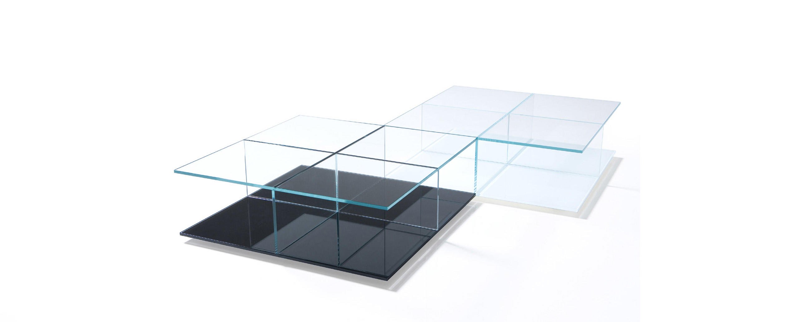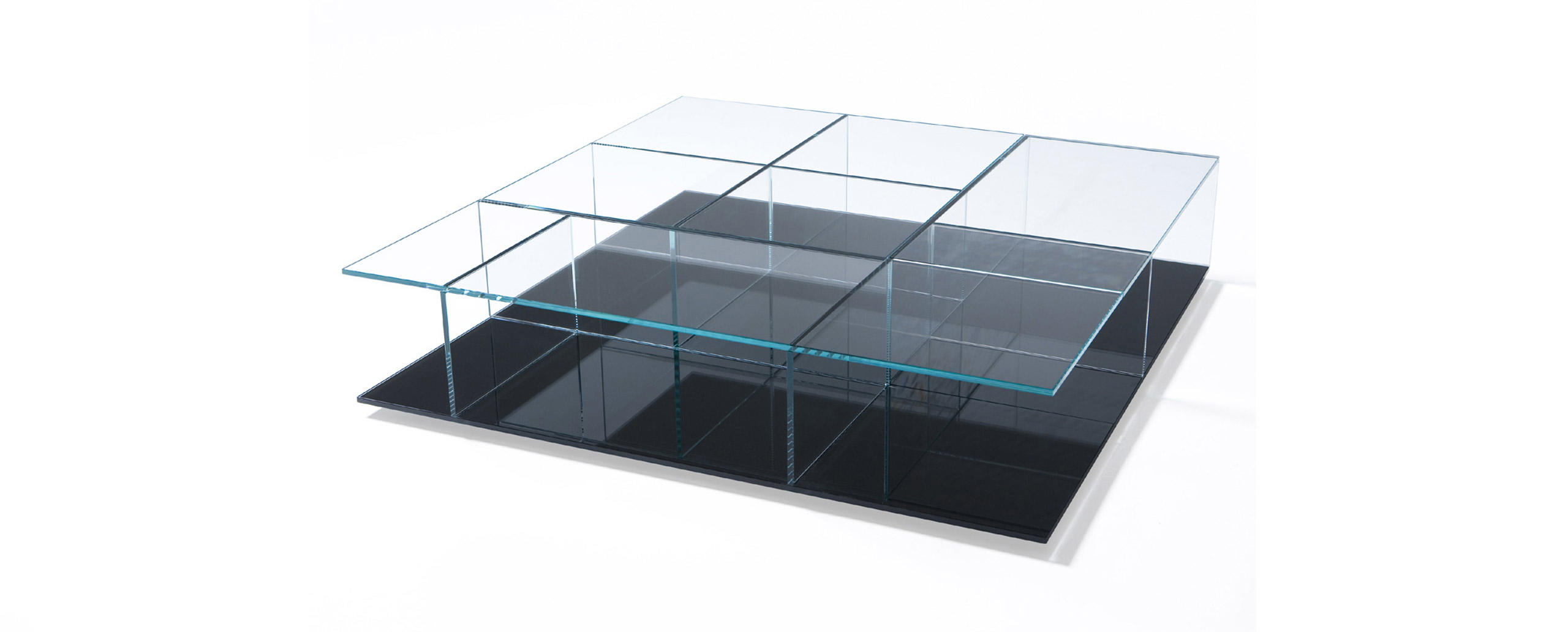 Tavolino etereo se osservato nelle sue trasparenze ma dall’immagine variabile se animato da libri, riviste e oggetti per cui diventa un perfetto e comodo rifugio.