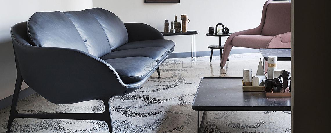 Un divano sospeso dalle linee minime e dagli spessori ridotti, che traducono la sensazione di comfort estremo attraverso un’estetica fluida e sinuosa. Vico rispecchia il desiderio innato di creare un nido privato, dove potersi rilassare senza dover rinunciare alla forma, alla struttura e alla comodità che contraddistinguono il design italiano. Il suo stile contemporaneo, essenziale e trasversale, sostituisce l’uso del legno con una base in fusione di alluminio in cui la memoria del passato incontra l’innovazione tecnologica. L’abilità sartoriale di Cassina si dimostra nel rivestimento rimbovibile in tessuto, espressione di una sfida costruttiva che invece di incollare il materiale al profilo sottile sceglie di esaltarlo con una lavorazione a tappezzeria. Hayon sviluppa parallelamente anche il concetto di forma, creando una sensazione morbida e organica apprezzabile da qualsiasi angolazione, mentre l’uso delle cinghie elastiche contribuisce ad accrescere l’alto livello di confort.