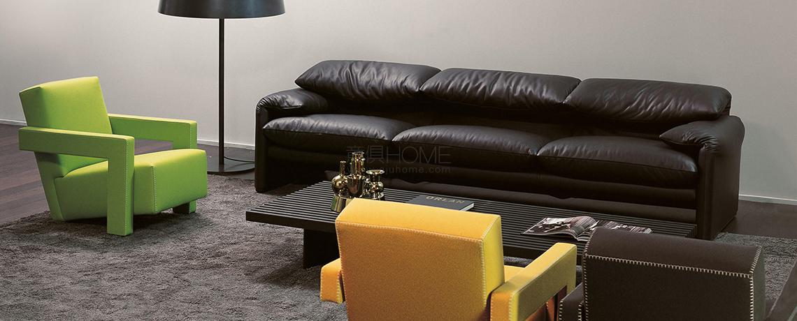 Maralunga è un divano simbolo nella collezione de iContemporanei di Cassina, opera dell’architetto e industrial designer Vico Magistretti. Vincitore del Compasso d’Oro nel 1979, Maralunga è la materializzazione dell’idea stessa di comfort, grazie alla variazione del poggiatesta per ottenere una versione a schienale alto o basso ottenuta con l’inserimento di una semplice catena da bicicletta nello schiumato dello schienale.Il modello si declina in poltrona, divani a due o a tre posti in diverse larghezze e pouf. In occasione dei suoi 40 anni, Cassina ha presentato una rinnovata interpretazione con rivestimento in tessuto o pelle, con una caratteristica cucitura lungo il profilo perimetrale, per renderlo ancora più moderno e contemporaneo, anche in versione sfoderabile per il tessuto.