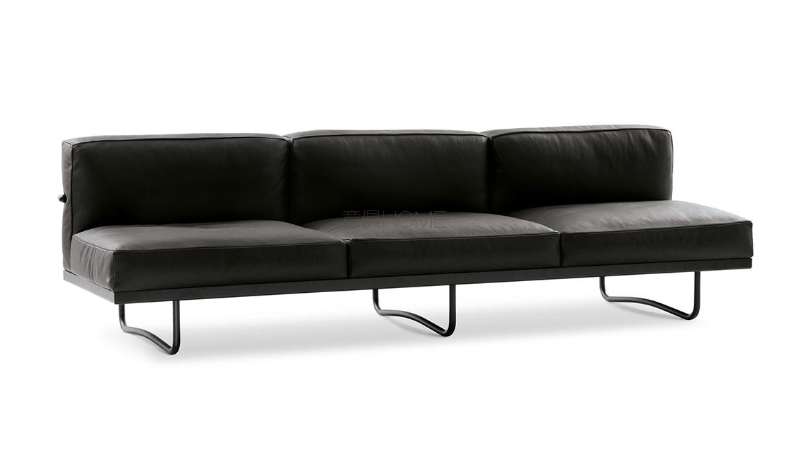 Linee contemporanee e confortevoli per il divano disegnato da Le Corbusier per la sua casa di Parigi, dove ancora oggi si conserva il modello autentico che ha ispirato il lungo processo di riedizioni compiuto dall’azienda nel pieno rispetto del pensiero degli autori. Cassina effettua una prima rivisitazione dell’originale nel 1974, offrendolo in un’unica dimensione con finitura cromata che sarà poi rinnovata nelle finiture che nelle misure più ampie. La struttura comoda ed elegante è dominata da cuscini in piuma a formare lo schienale e la seduta, sostenuti da una base metallica di grande riconoscibilità declinata nei sette colori della collezione. L’attuale edizione con due o tre posti è disponibile con rivestimento in pelle o tessuto.
