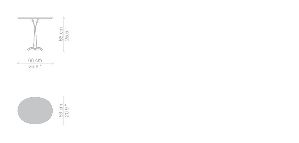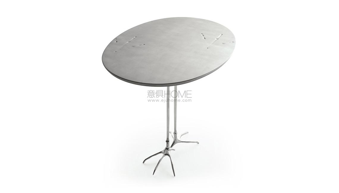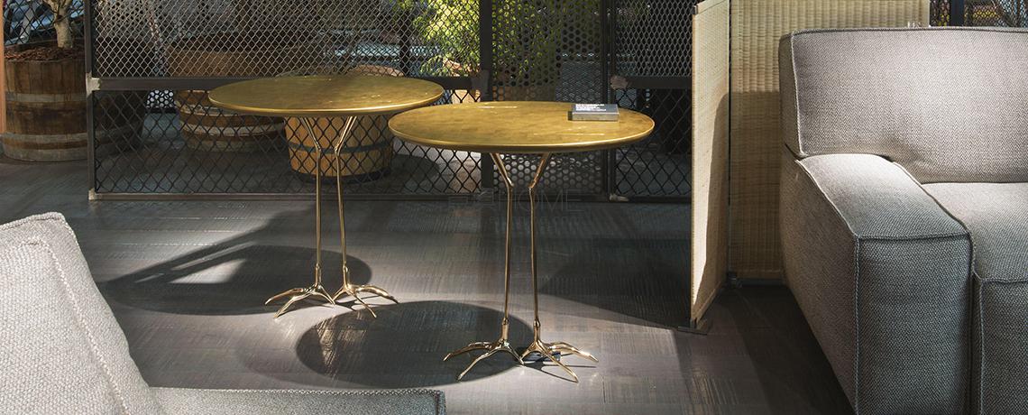 Nel 1971 Dino Gavino introduce “l(fā)’opera d’arte funzionale”, inaugurando una nuova concezione di arredamento che adatta l’oggetto surrealista all’uso quotidiano. Da qui la nascita della collezione Ultramobile: una proposta che vive di immaginazione, che completa l’intelligenza razionale con la meraviglia, che fa interagire la geometria con la fantasia. Al suo interno è incluso il tavolino che l’artista svizzera Meret Oppenheim disegnò nel 1929 per la galleria di avanguardia di Leo Castelli, battezzandolo “Bird Leg Table” per le sue ovvie sembianze. Le gambe sottili e le zampe di artiglio in bronzo fuso lucido sono un omaggio ai classici piedi di artiglio presenti negli arredi dei secoli passati. Negli anni '70, l'azienda Simon International ne realizzò una versione ridotta in produzione limitata, rieditata da Cassina nel pieno rispetto del modello autentico.