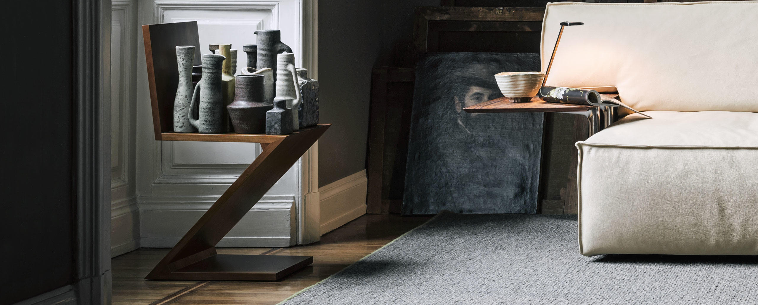 La sedia progettata da Rietveld rappresenta uno dei primi esempi di seduta a sbalzo, formata da quattro piani in sequenza ritmica che si sviluppano in un’apparente instabilità di grande raffinatezza. Il maestro sostituisce la normale successione degli elementi - gambe-seduta-schienale – con un foglio continuo in legno a forma di zeta rovesciata. La maestria costruttiva dei falegnami di Cassina si rivela nell’esecuzione degli incastri a coda di rondine che valorizzano la struttura. L’unicità estetica dell’oggetto si percepisce in modo particolare nella versione colorata con finitura a poro aperto che esalta le venature del legno nei piani e nelle sezioni laterali; un trattamento che riprende alcune varianti realizzate dall’architetto per valorizzare il rapporto tra linee verticali, oblique e orizzontali.