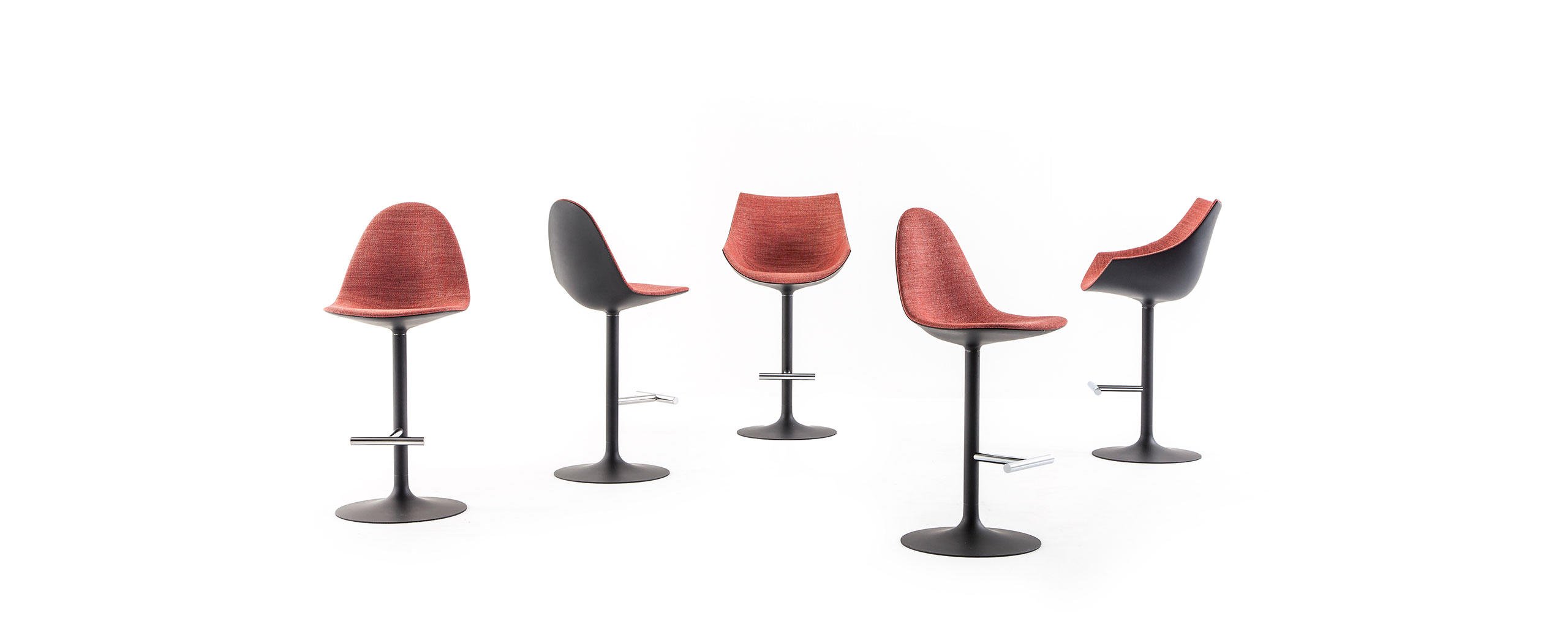 La gamma Caprice/Passion si espande per accogliere due nuovi sgabelli caratterizzati da una base a stelo di alluminio e da sedute che riproducono le rispettive fisionomie della sedia Caprice e della poltroncina Passion. La seduta degli sgabelli ruota a 360° ed è sempre posizionata in direzione del poggiapiedi cromato grazie al meccanismo automatico della base. La proposta, sviluppata su due altezze, arricchisce l’estetica iconica e intramontabile di Cassina puntando a rafforzare il suo posizionamento nel segmento business e nell’arredo degli ambienti che associano vita e lavoro.