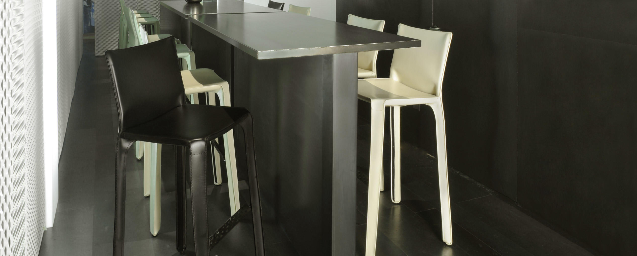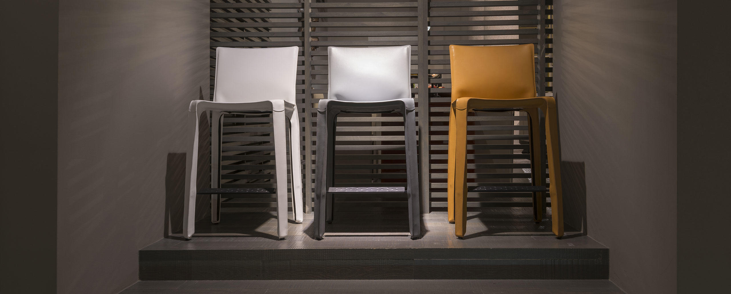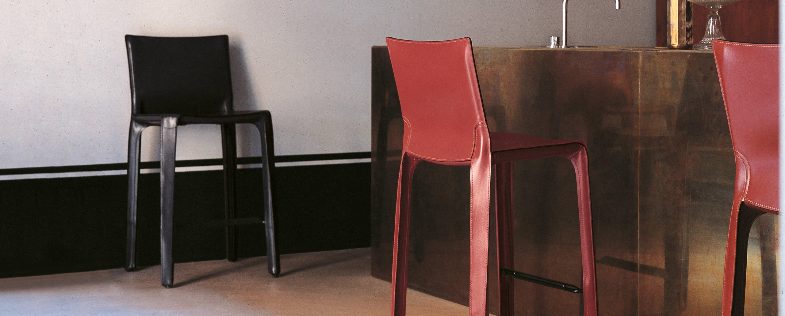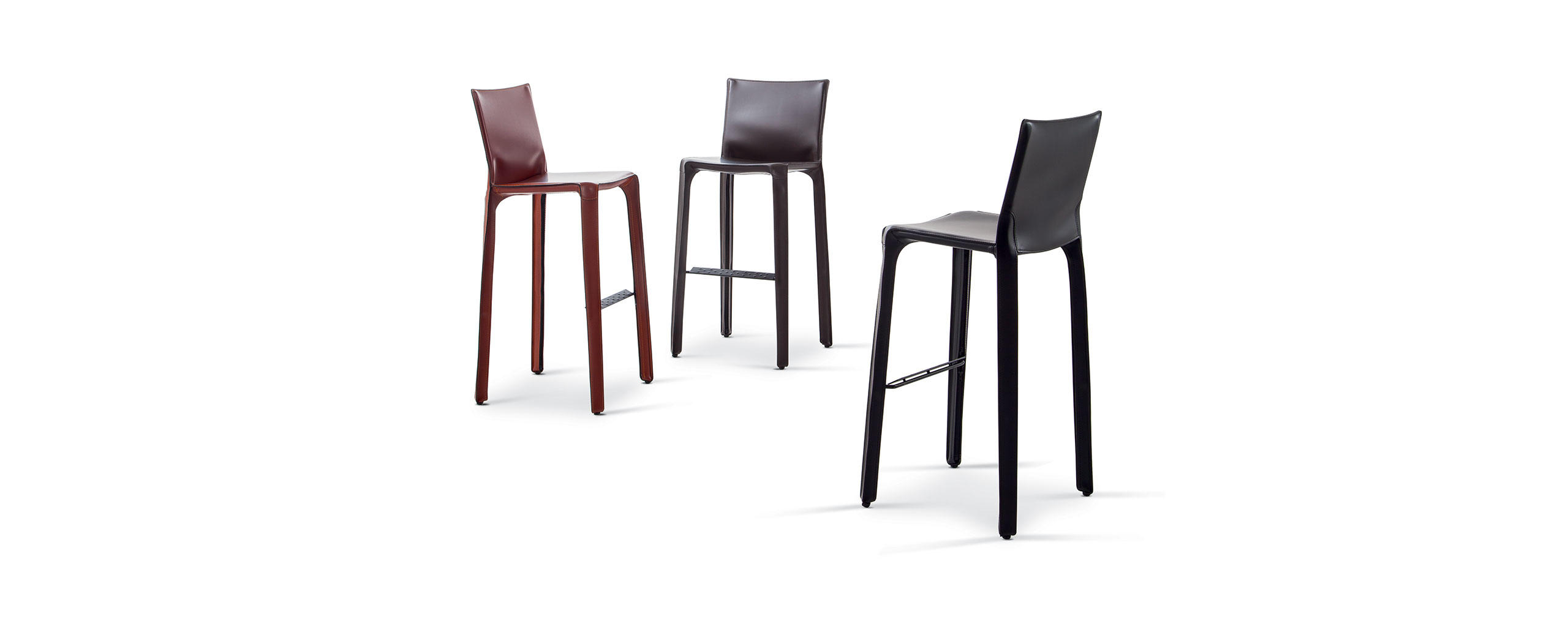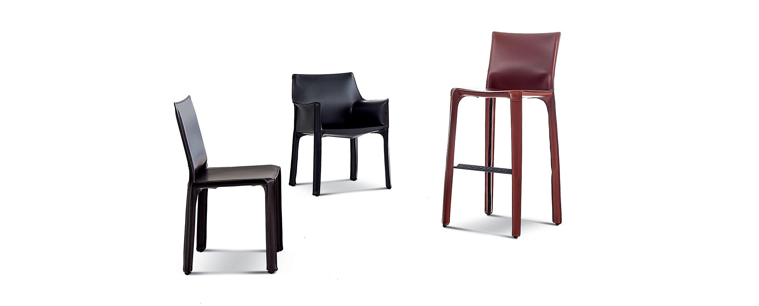 “Un nuovo genere di sedia, tutta in cuoio, oggi molto clonata”. Così Mario Bellini descrive la sedia-poltroncina Cab, best-seller ideato nell’epoca d’oro del design italiano e oggi pezzo iconico della collezione I Contemporanei. Cab è la prima sedia al mondo caratterizzata da un struttura in cuoio autoportante ispirata al rapporto tra scheletro e pelle. Il suo rivestimento è formato da 16 parti in cuoio, fustellate una ad una e successivamente sottoposte a 14 lavorazioni manuali. Le singole parti tagliate vengono infatti cucite insieme solo dopo aver subito un procedimento di scarnitura volto ad assottigliare lo spessore delle porzioni da accoppiare. Il rivestimento viene poi calzato su uno scheletro d'acciaio e chiuso con cerniere lampo come un abito sartoriale. Oltre all’ampia varietà di colori per la seduta in cuoio, la proposta include la variante in cuoio pigmentato nelle tonalità del nero, marrone e rosso bulgaro.