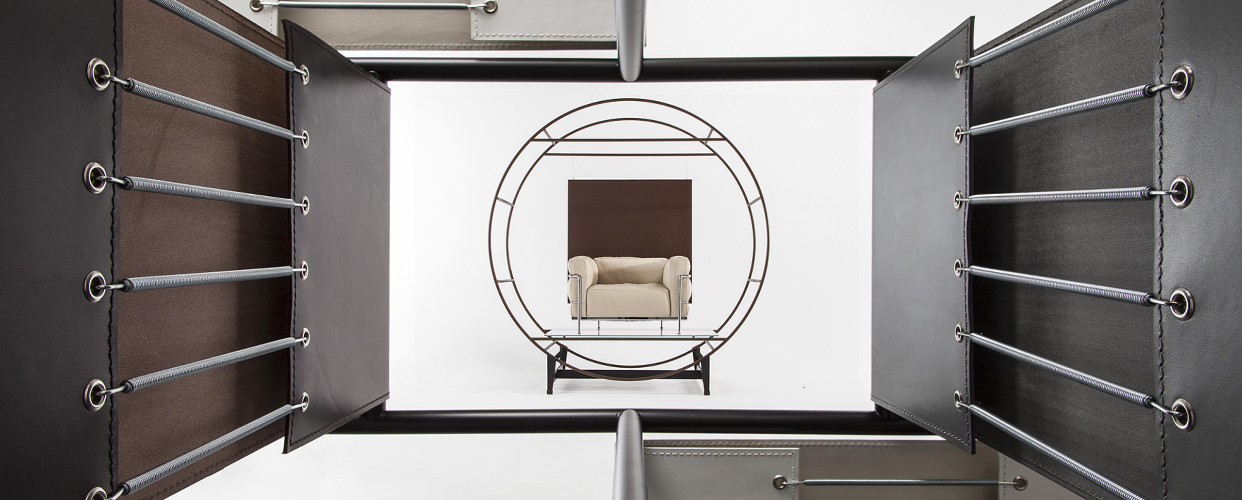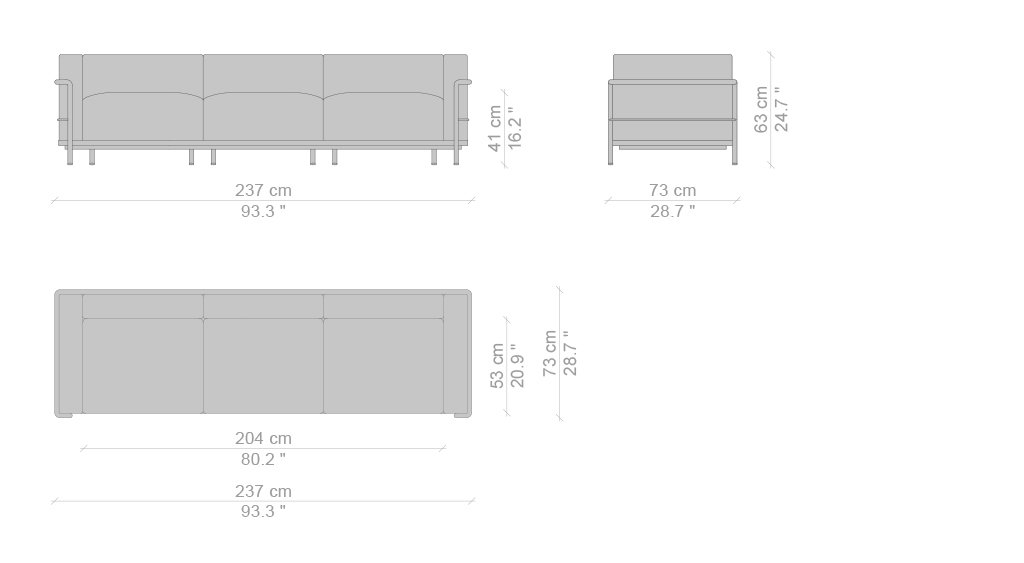 Con LC3 la logica della modernità attua una separazione tra la struttura portante in metallo e gli elementi imbottiti, richiamando la relazione architettonica tra la struttura portante in cemento e gli elementi di tamponamento. In questo caso quattro cuscini, privi di legami, sono disposti in una gabbia di tubi di acciaio verniciato o cromato che costituisce il supporto primario del mobile in ogni sua tipologia, dalla poltrona con bracciolo singolo o doppio ai divani a due o tre posti. Nel corso degli anni Cassina ha collaborato a stretto contatto con Charlotte Perriand, con la sua erede e con la Fondatiòn Le Corbusier per introdurre nuove versioni e finiture che pur reinterpretando il progetto originale ne rispettano pienamente l’autenticità. Tra queste spicca la variante LC3 Outdoor, con struttura in acciaio inossidabile e cuscinature in poliuretano drenante a garantire massima durata e affidabilità in tutte le condizioni climatiche.