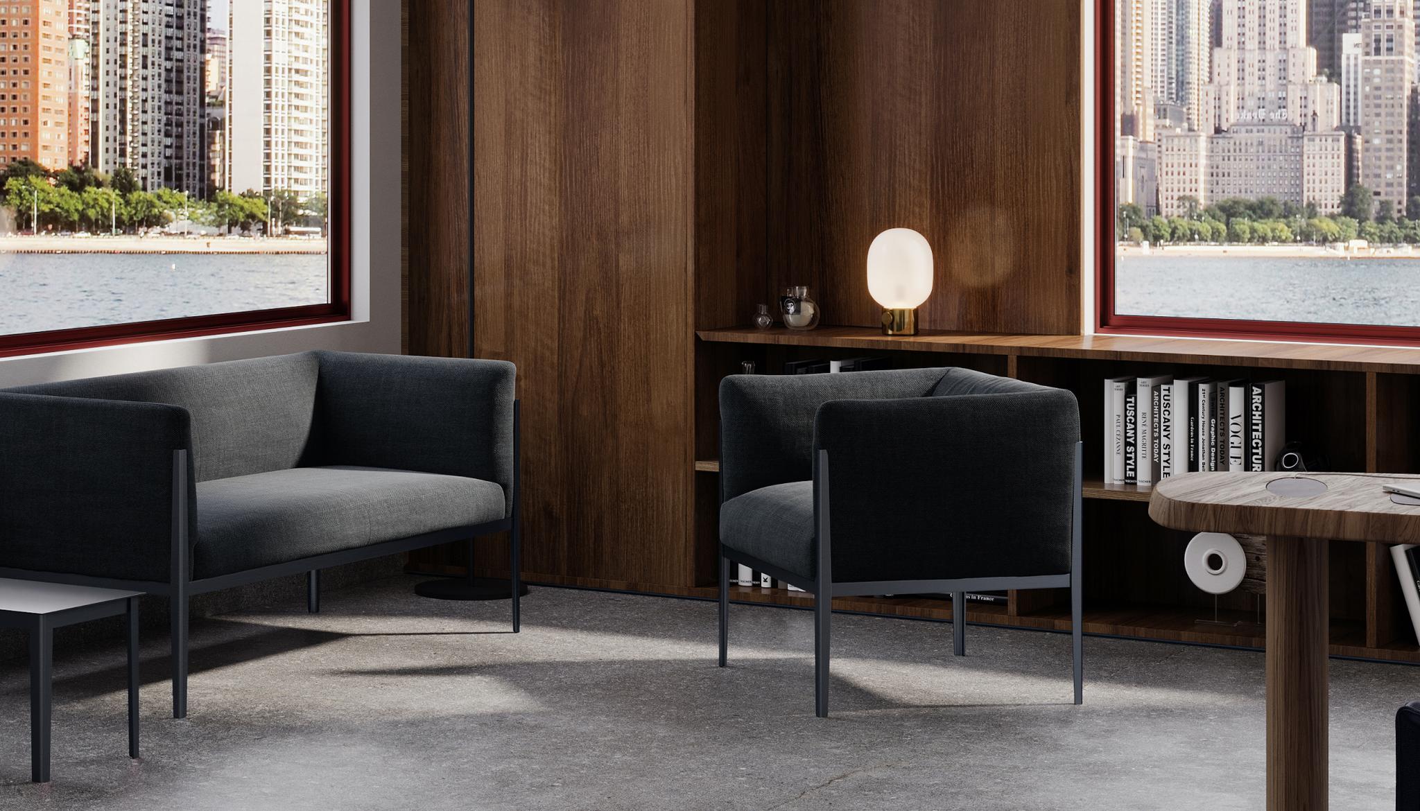 This comfortable design sofa, part of the Cotone family, features a distinctive structure in red, grey-blue or matte champagne anodized aluminum. Seemingly simple, thanks to its minimalist look, it hides some industrially sophisticated internal workings.