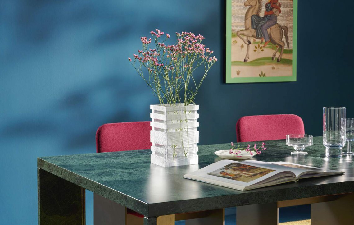 在這個由Bodil Kj?r在六十年代初設(shè)計(jì)的Skyscraper新版本中,建筑仍然是主角。從其名稱“Skyscraper(摩天大樓)”就可以看出,這個花瓶的輪廓讓人們想起了摩天大樓。它雕塑般的外形是通過復(fù)雜的工藝而實(shí)現(xiàn)的,而玻璃的精致則突出了其強(qiáng)烈的美學(xué)效果。