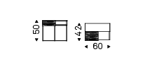 Nightstand in graphite (GF69) or white (GF71) embossed lacquered wood with sliding door in Canaletto walnut (NC) or burned oak (RB). Base in white (GFM71) or graphite (GFM69) embossed lacquered steel.