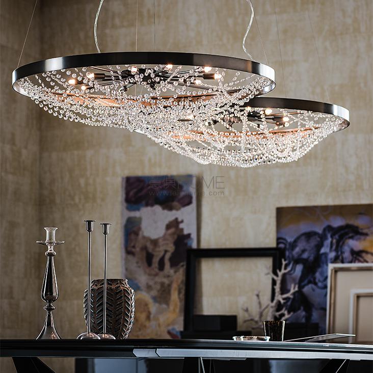 Ceiling lamp with satin Nickel steel frame. Lampshade with crystal pendants. Bulb included.