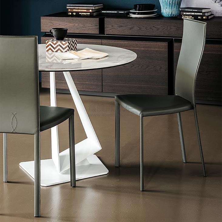 Chair with steel frame covered in leather as per sample card. Standard stitching