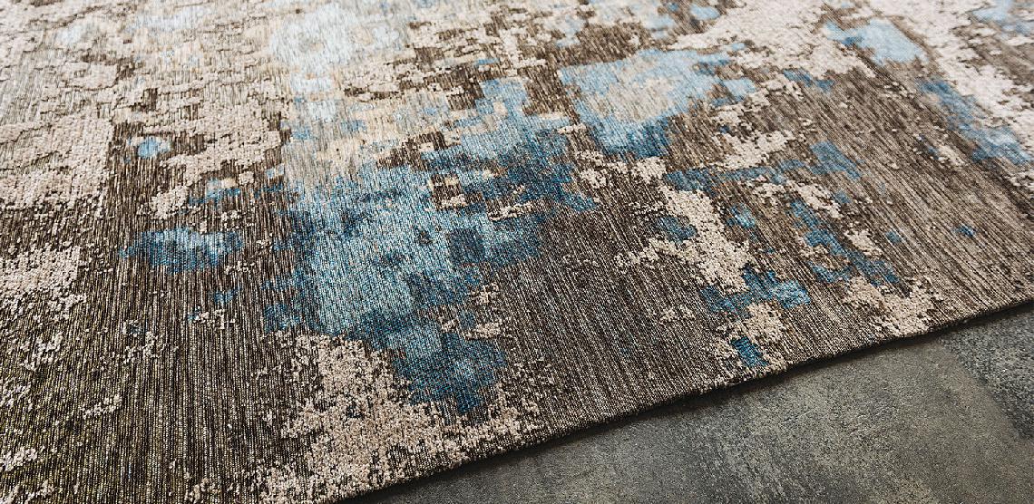 Rug made in cotton and chenille with relief.