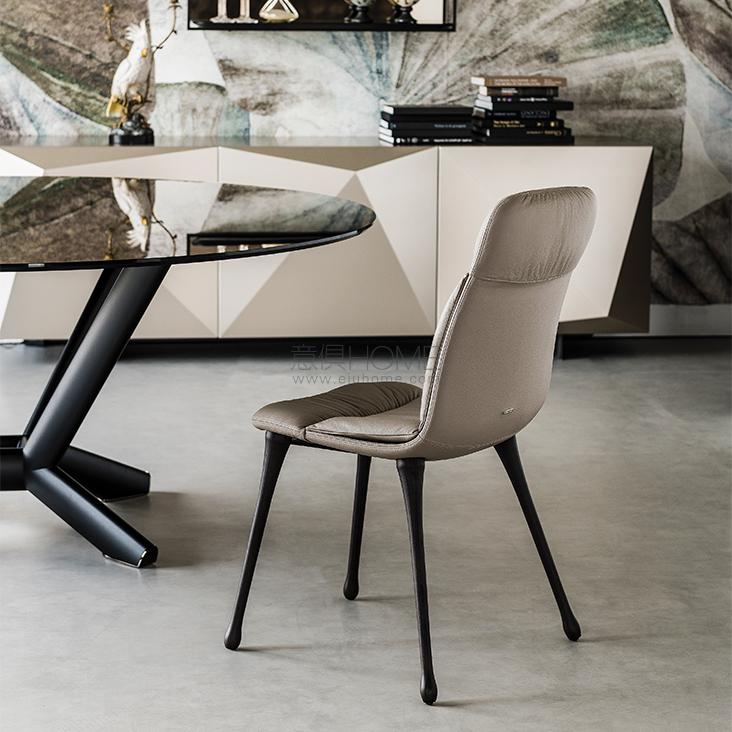 Chair with frame in natural ashwood (frN), Canaletto walnut stained ashwood (frNC), burned oak stained ashwood (frRB) or open pore matt white (fr71) or black (fr73) ashwood. Seat and back upholstered in fabric, synthetic nubuck, synthetic leather or soft leather as per sample card. The cover is not removable.