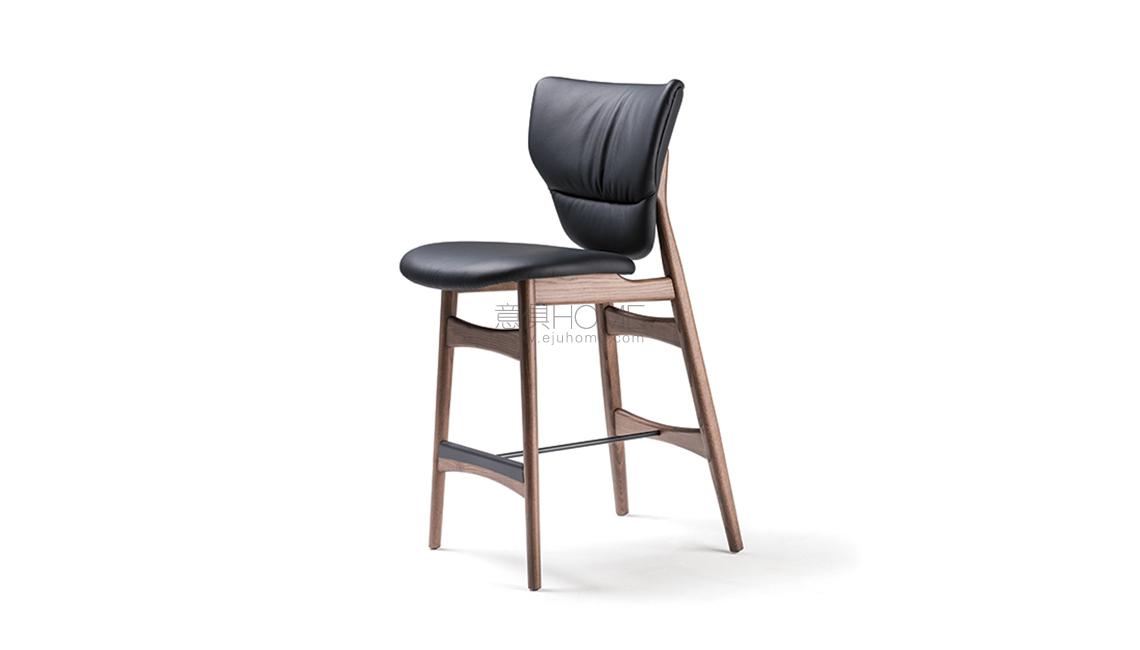 Stool with frame in Canaletto walnut stained ashwood (frNC), burned oak stained ashwood (frRB) or open pore matt white (fr71) or black (fr73) painted ashwood. Seat and back upholstered in fabric, synthetic nubuck, synthetic leather or soft leather as per sample card.