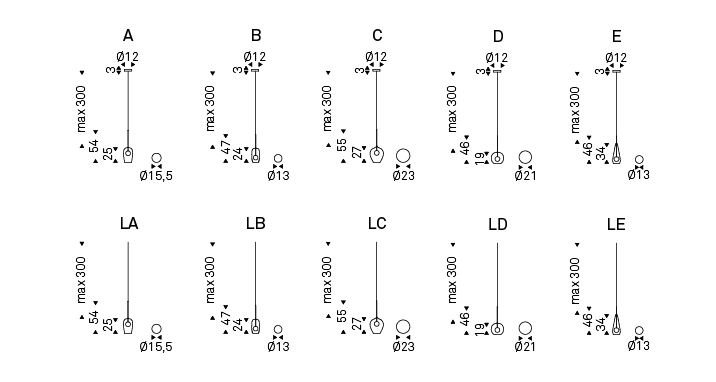 Ceiling lamp with lampshade in fumé glass. Ceiling plate in black chrome steel (06). S2/12: round ceiling plate for 2/12 lampshades. Bulb included.