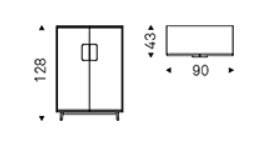 Sideboard embossed lacquered graphite (GF69), black (GF73), Brushed Bronze or Brushed Grey wood, with doors in Brushed Bronze or Brushed Grey wood. Feet in graphite (GFM69) or balck (GFM73) embossed lacquered steel. Partially mirrored inside and fumé glass shelves. Optional: internal led light kit.