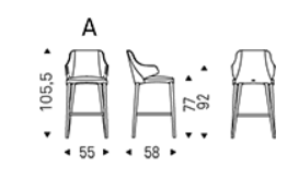 Stool with steel frame and covered in fabric, synthetic leather, synthetic nubuck or soft leather as per sample card. The cover is not removable.