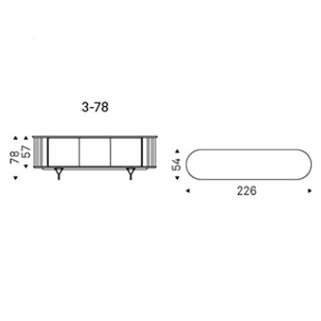 The curved transparent glass sides are interspersed with vertical metal inserts, which give rhythm to the composition and allow a glimpse of the internal glass shelves. But the real detail that differentiates it is the refined foot, composed of two metal elements forming a Y that rests gracefully on the ground. The wooden doors are made with diagonal slats that highlight the attractive natural grain of the wood. This modern sideboard is made with 2 or 4 doors, to adapt naturally to any space in the house.
