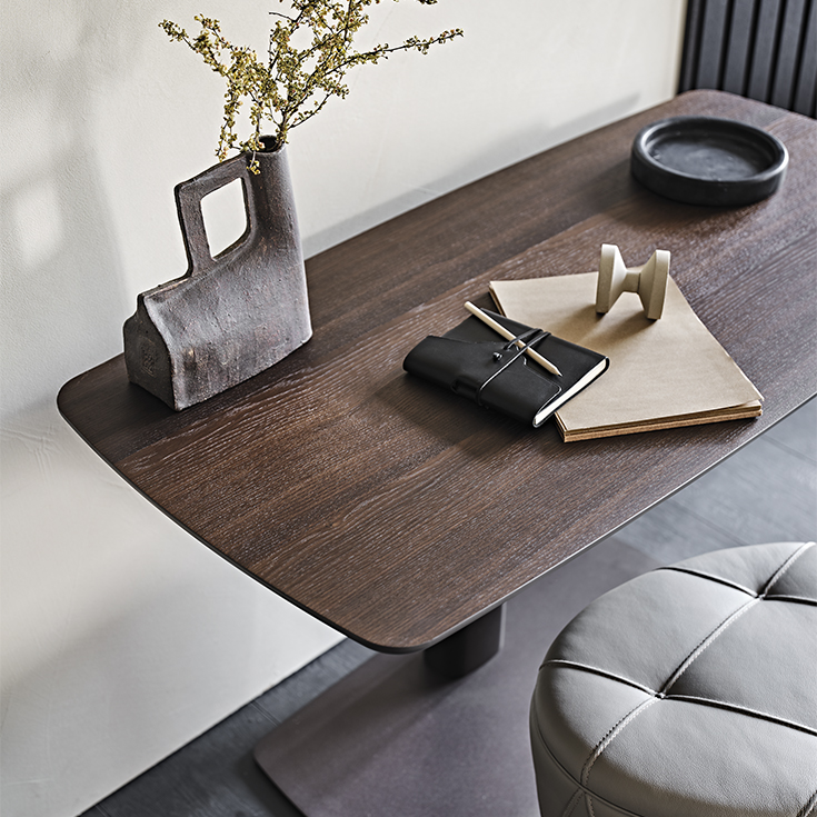 The height of this adjustable desk can easily be changed thanks to an ingenious electronic lever, promoting correct posture for your sitting position and allowing standing use. While the ergonomic aspect is central, there’s no ignoring the refined details and finishes that enhance this design desk made with high-quality materials. The Runner family is available with a ceramic, wood or leather top, giving life to the Runner Keramik, Runner Wood and Runner Leather models.