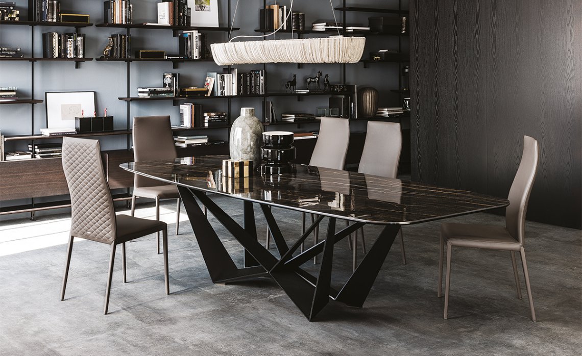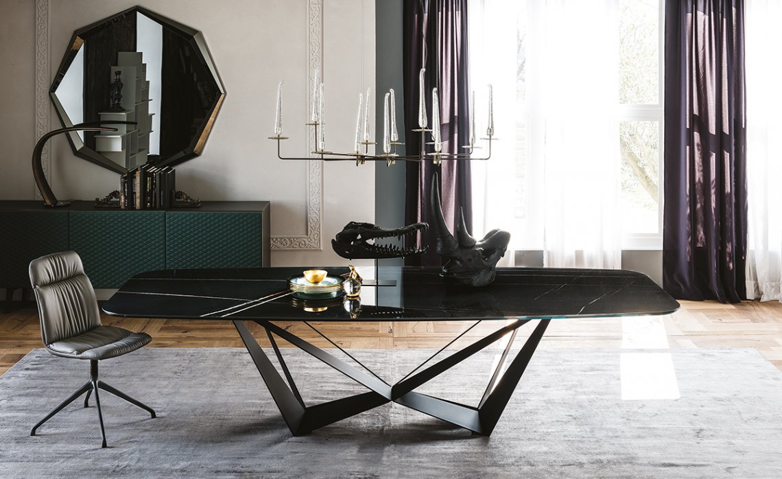 This product is constantly evolving, the wide design tables range has been expanded to reach 8 versions. A range extension that express the creative force of the Skorpio collection which includes: Skorpio glass table, Skorpio Wood, Skorpio Keramik, Skorpio Keramik Premium, Skorpio Crystalart and 3 round tables Skorpio Round, Skorpio Keramik Round and Skorpio Ker-Wood Round with both ceramic and wood table top.